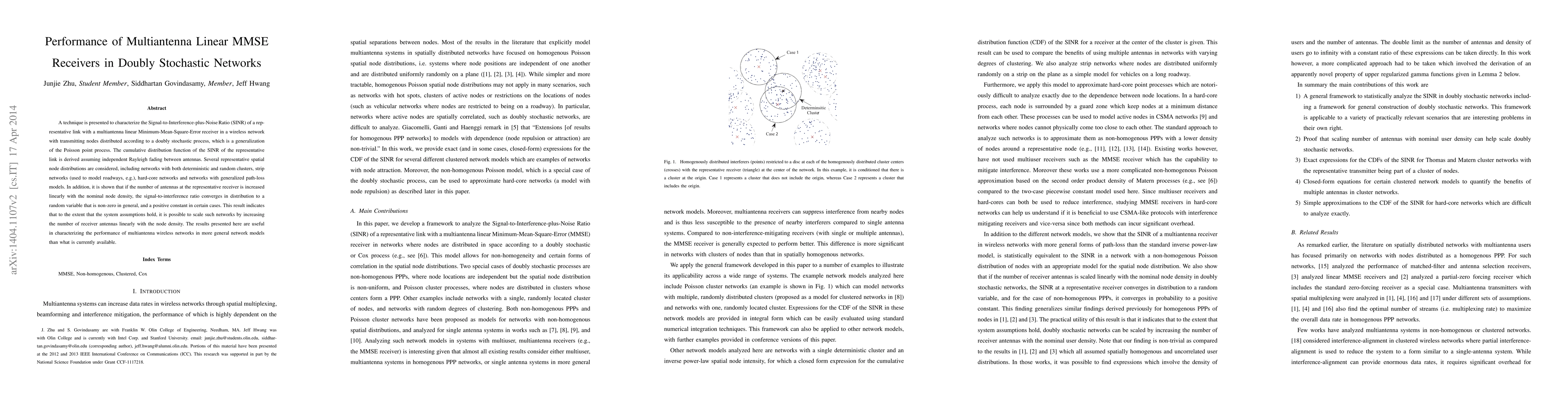 A technique is presented to characterize performance of multiantenna linear MMSE receivers in doubly stochastic wireless networks, showing that increasing receiver antennas can scale networks.
