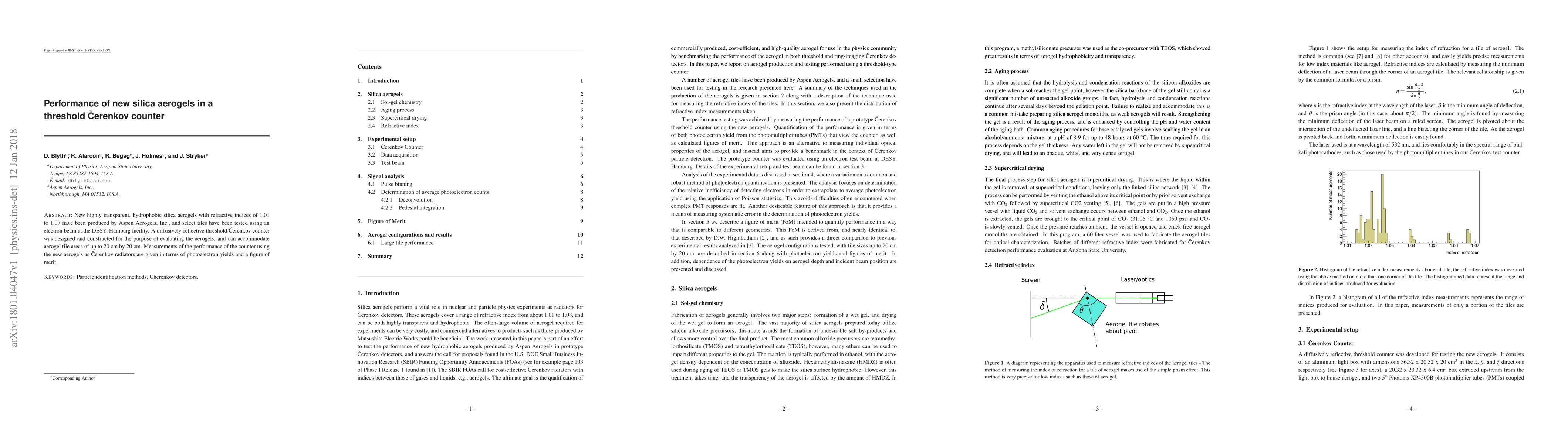 New highly transparent, hydrophobic silica aerogels with refractive indices of 1.01 to 1.07 have been produced by Aspen Aerogels, Inc., and select tiles have been tested using an electron beam at the DESY, Hamburg facility. A diffusively-reflective threshold Cerenkov counter was designed and constructed for the purpose of evaluating the aerogels, and can accommodate aerogel tile areas of up to 20 cm by 20 cm. Measurements of the performance of the counter using the new aerogels as Cerenkov radiators are given in terms of photoelectron yields and a figure of merit.