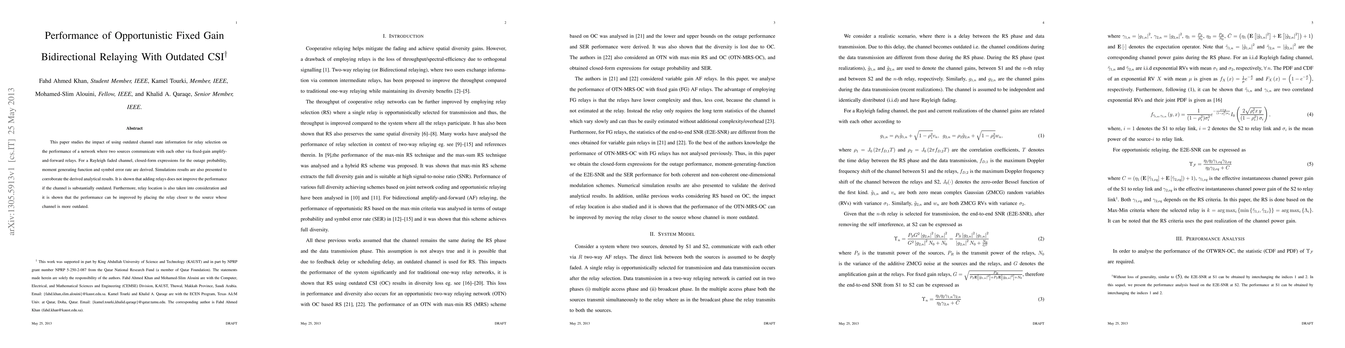 Using outdated channel state information for relay selection in fixed-gain amplify-and-forward relays degrades performance unless additional relays are added closer to the source with the most outdated channel.