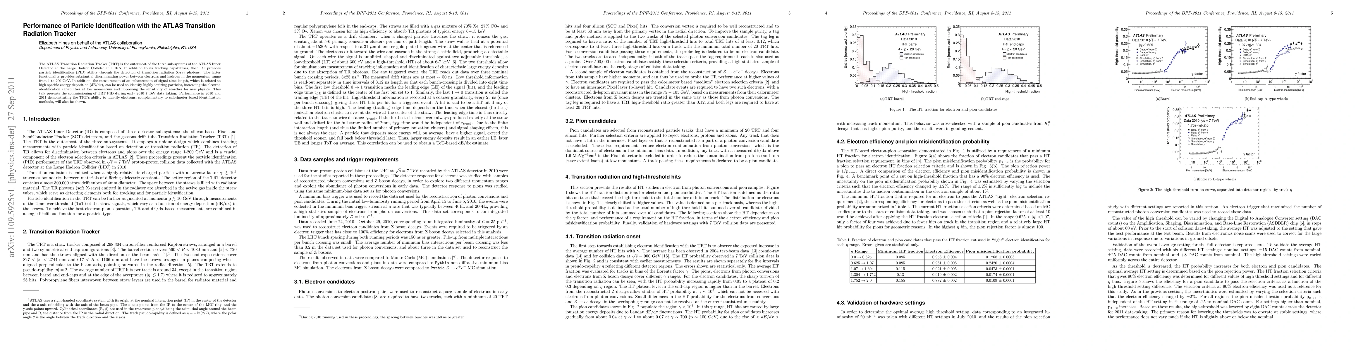 The ATLAS Transition Radiation Tracker (TRT) enhances particle identification through transition radiation X-ray photon detection, distinguishing electrons from hadrons and identifying highly ionizing particles. Commissioning and performance evaluations from 2010 and 2011 show its complementary role to calorimeter-based methods in electron identification.