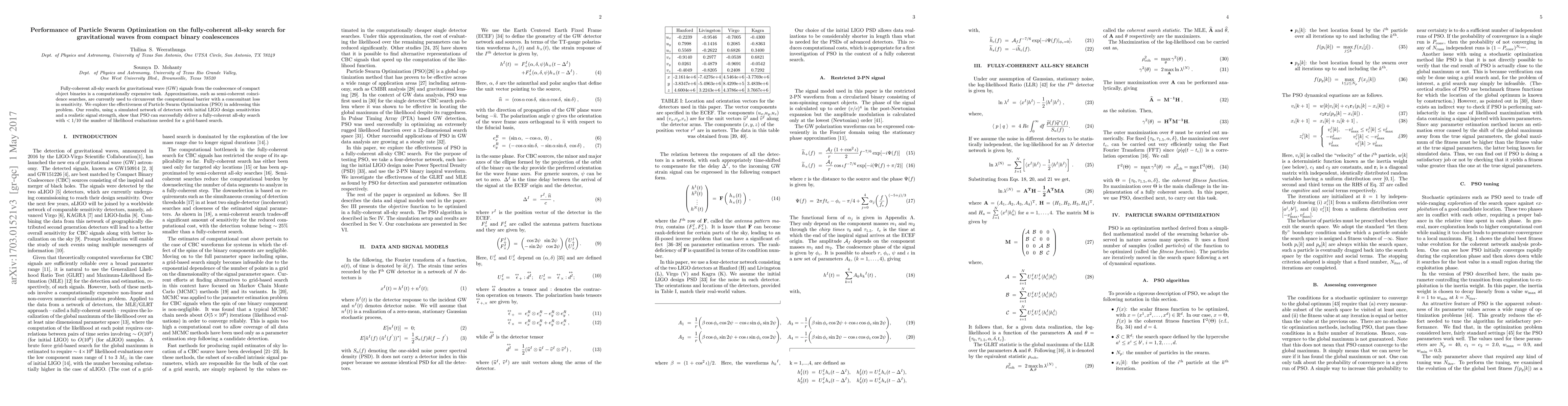 This paper investigates the use of Particle Swarm Optimization (PSO) to perform a fully-coherent all-sky search for gravitational waves from compact binary coalescences, demonstrating that PSO requires fewer likelihood evaluations compared to grid-based methods, thus enhancing computational efficiency.