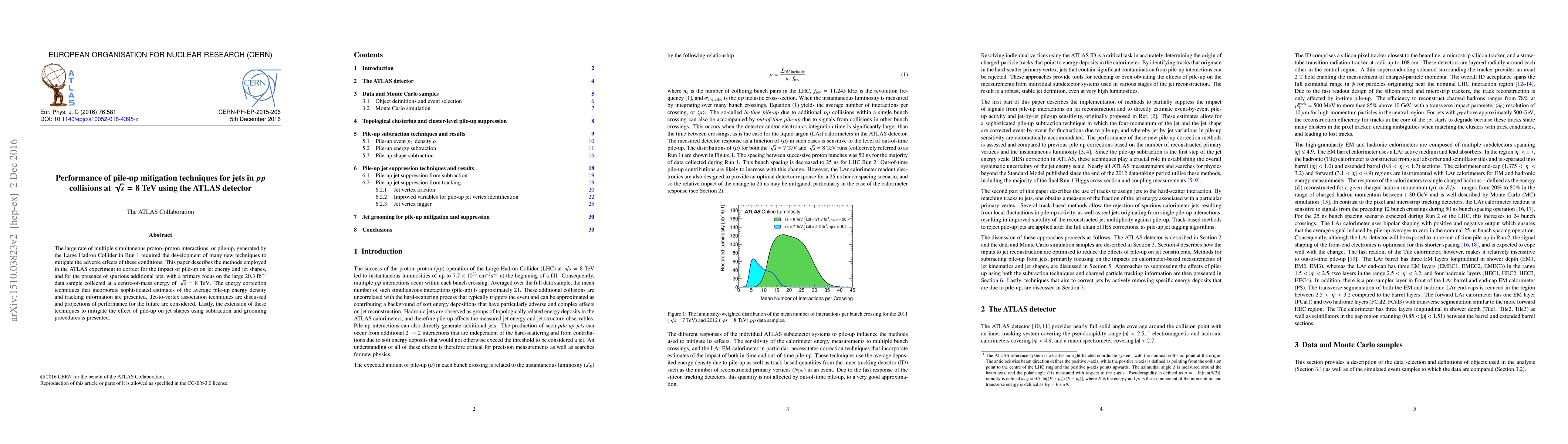 Researchers at ATLAS detector used various techniques to mitigate the impact of pile-up on jet energy and shapes in proton-proton collisions at 8 TeV. These methods improved event reconstruction accuracy and paved the way for future experiments.
