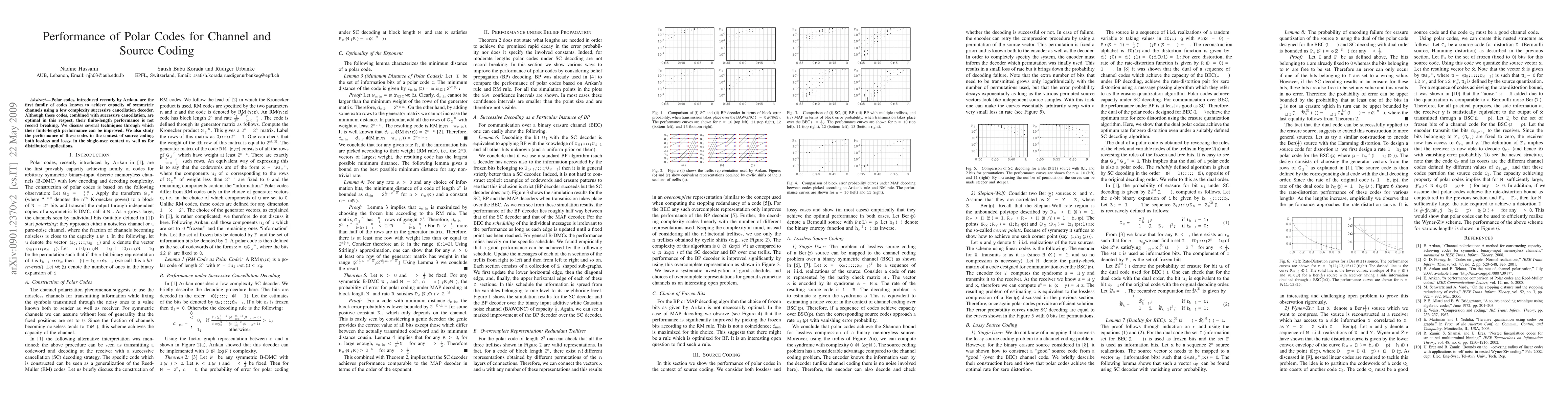 This paper investigates the performance of polar codes for channel and source coding, focusing on improving their finite-length performance and exploring their use in single-user and distributed applications.