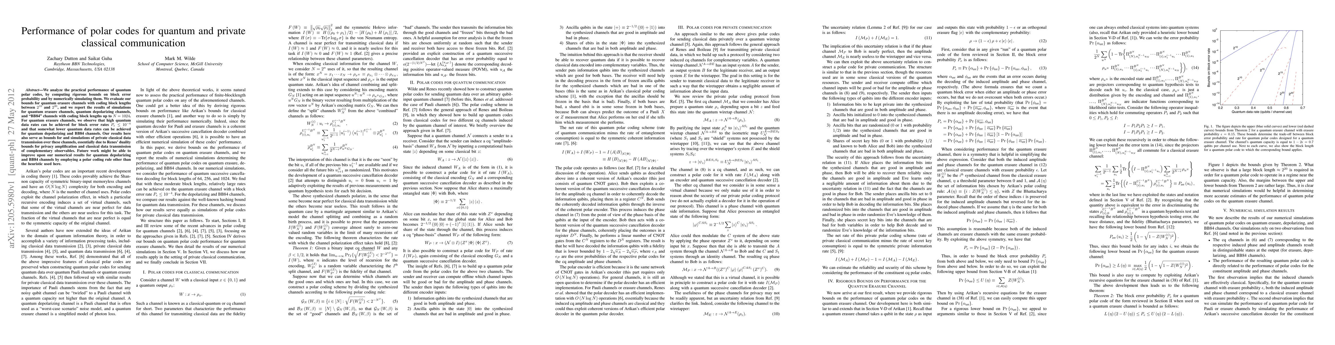 We analyze the practical performance of quantum polar codes, by computing rigorous bounds on block error probability and by numerically simulating them. We evaluate our bounds for quantum erasure channels with coding block lengths between 2^10 and 2^20, and we report the results of simulations for quantum erasure channels, quantum depolarizing channels, and "BB84" channels with coding block lengths up to N = 1024. For quantum erasure channels, we observe that high quantum data rates can be achieved for block error rates less than 10^(-4) and that somewhat lower quantum data rates can be achieved for quantum depolarizing and BB84 channels. Our results here also serve as bounds for and simulations of private classical data transmission over these channels, essentially due to Renes' duality bounds for privacy amplification and classical data transmission of complementary observables. Future work might be able to improve upon our numerical results for quantum depolarizing and BB84 channels by employing a polar coding rule other than the heuristic used here.