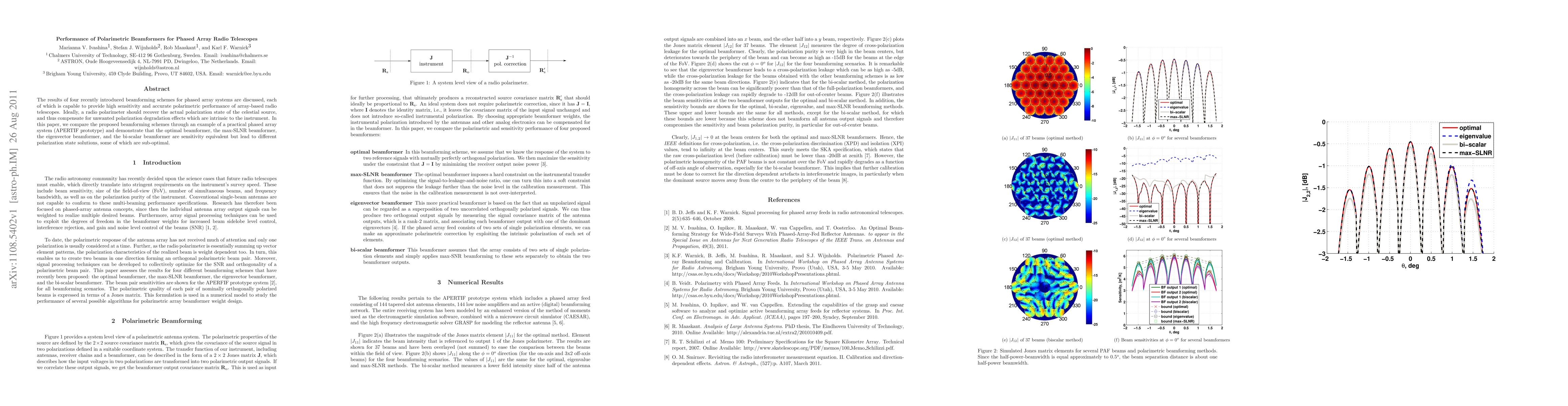 This paper evaluates four beamforming schemes for phased array radio telescopes, demonstrating their sensitivity equivalence but differing polarimetric performance. The optimal max-SLNR beamformer, eigenvector beamformer, and bi-scalar beamformer each provide distinct polarization state solutions, some of which are sub-optimal.