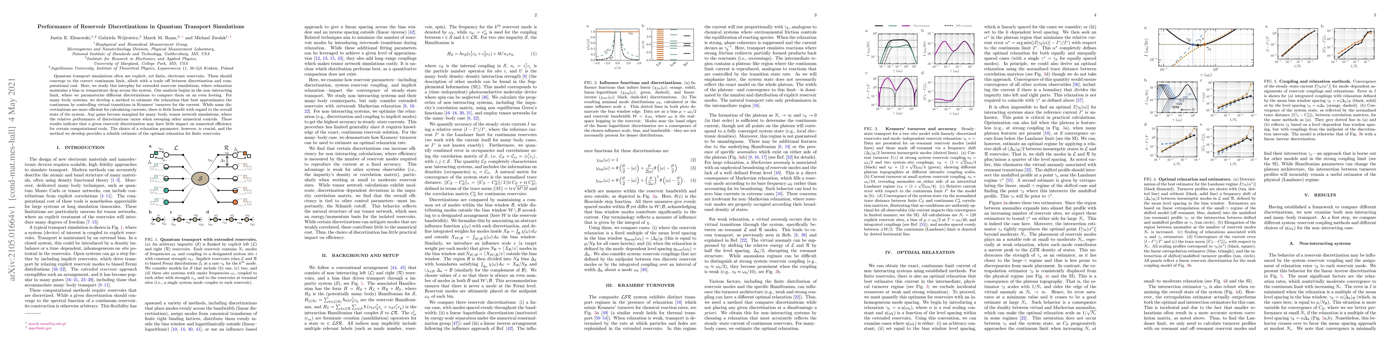 Quantum transport simulations often use explicit, yet finite, electronic reservoirs. These should converge to the correct continuum limit, albeit with a trade-off between discretization and computational cost. Here, we study this interplay for extended reservoir simulations, where relaxation maintains a bias or temperature drop across the system. Our analysis begins in the non-interacting limit, where we parameterize different discretizations to compare them on an even footing. For many-body systems, we develop a method to estimate the relaxation that best approximates the continuum by controlling virtual transitions in Kramers' turnover for the current. While some discretizations are more efficient for calculating currents, there is little benefit with regard to the overall state of the system. Any gains become marginal for many-body, tensor network simulations, where the relative performance of discretizations varies when sweeping other numerical controls. These results indicate that a given reservoir discretization may have little impact on numerical efficiency for certain computational tools. The choice of a relaxation parameter, however, is crucial, and the method we develop provides a reliable estimate of the optimal relaxation for finite reservoirs.
