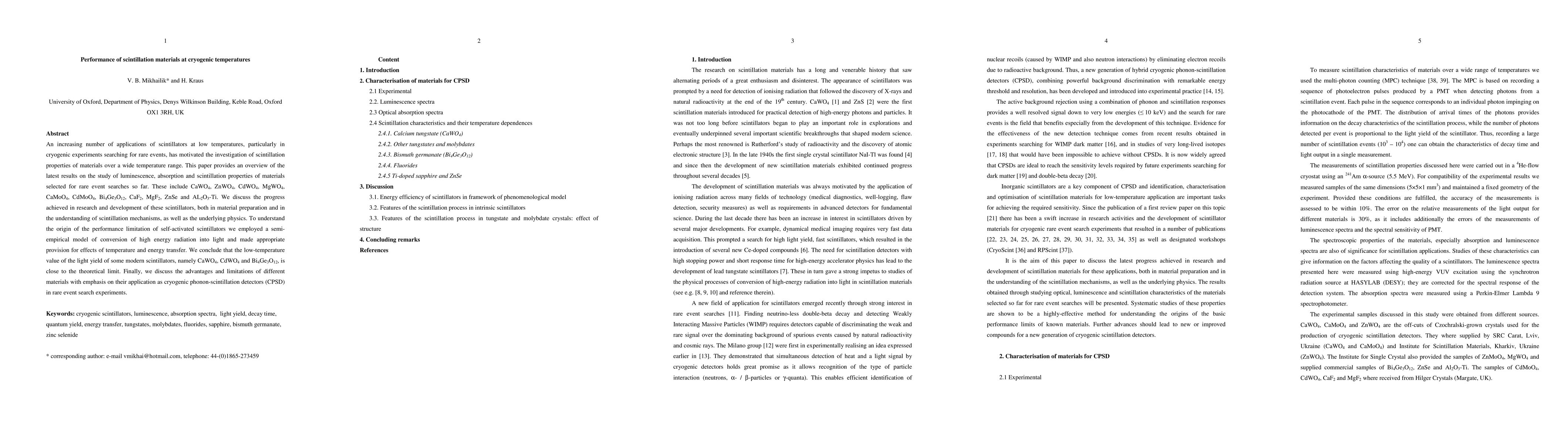 This paper reviews the performance of scintillation materials at cryogenic temperatures, focusing on materials like CaWO4 and Bi4Ge3O12 used in rare event searches. It discusses the luminescence and scintillation properties, highlighting the near-theoretical limits of light yield for some materials, and evaluates their suitability for cryogenic phonon-scintillation detectors.