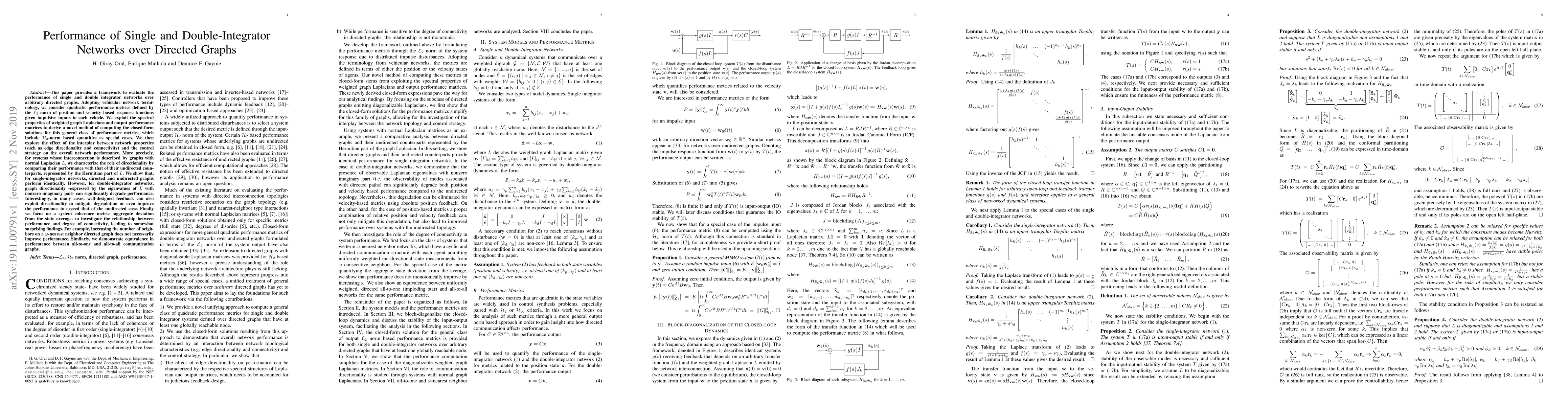 This research presents a framework to assess the performance of single and double integrator networks over directed graphs using L2-norm of position and velocity. It reveals that for single-integrator networks, graph directionality has no impact, but for double-integrator networks, directionality can negatively affect performance, though well-designed feedback can sometimes mitigate or even enhance outcomes. Surprisingly, increasing connectivity does not always improve performance, and all-to-one and all-to-all communication graphs show equivalent performance.