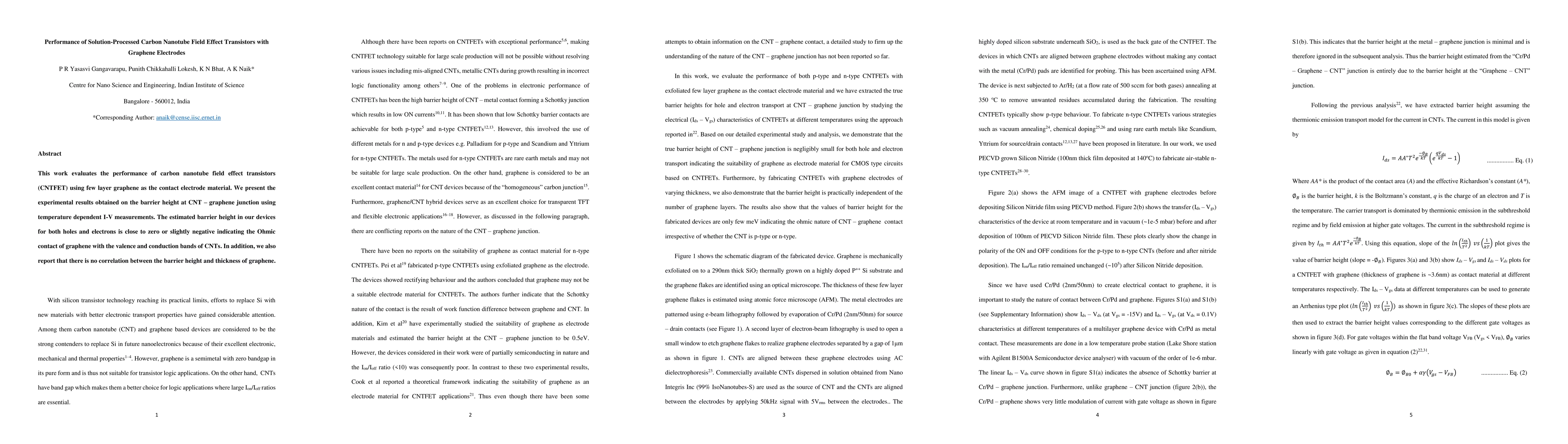 This study assesses carbon nanotube field effect transistors with few-layer graphene as contact electrodes, finding near-zero barrier heights indicating Ohmic contacts between graphene and CNTs, with no dependency on graphene thickness.