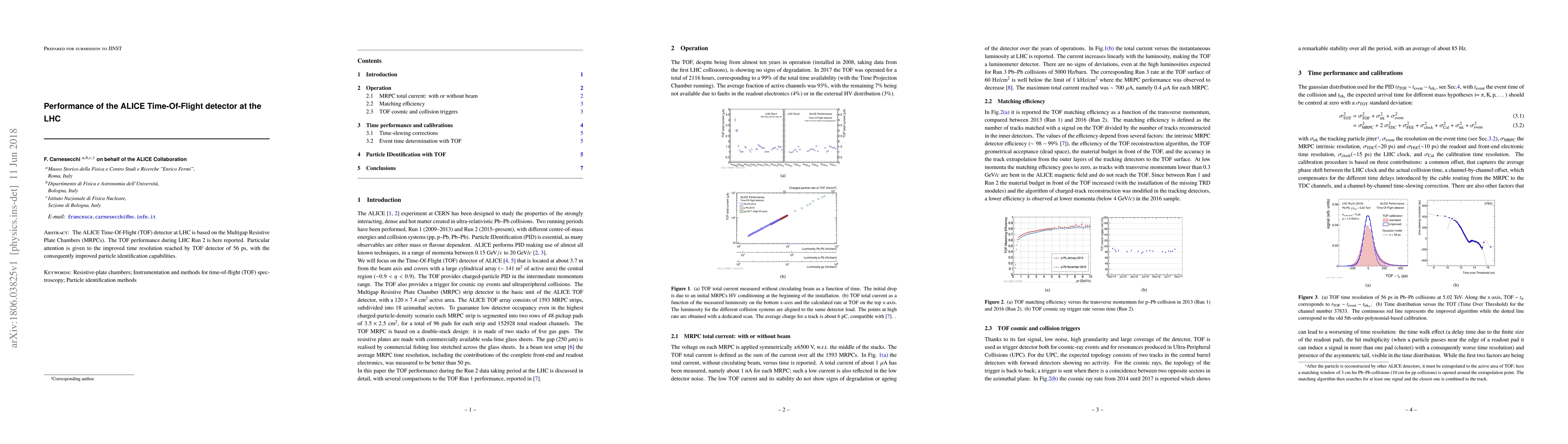 The ALICE Time-Of-Flight detector at the LHC, utilizing Multigap Resistive Plate Chambers, achieved a time resolution of 56 ps during LHC Run 2, significantly enhancing particle identification capabilities.