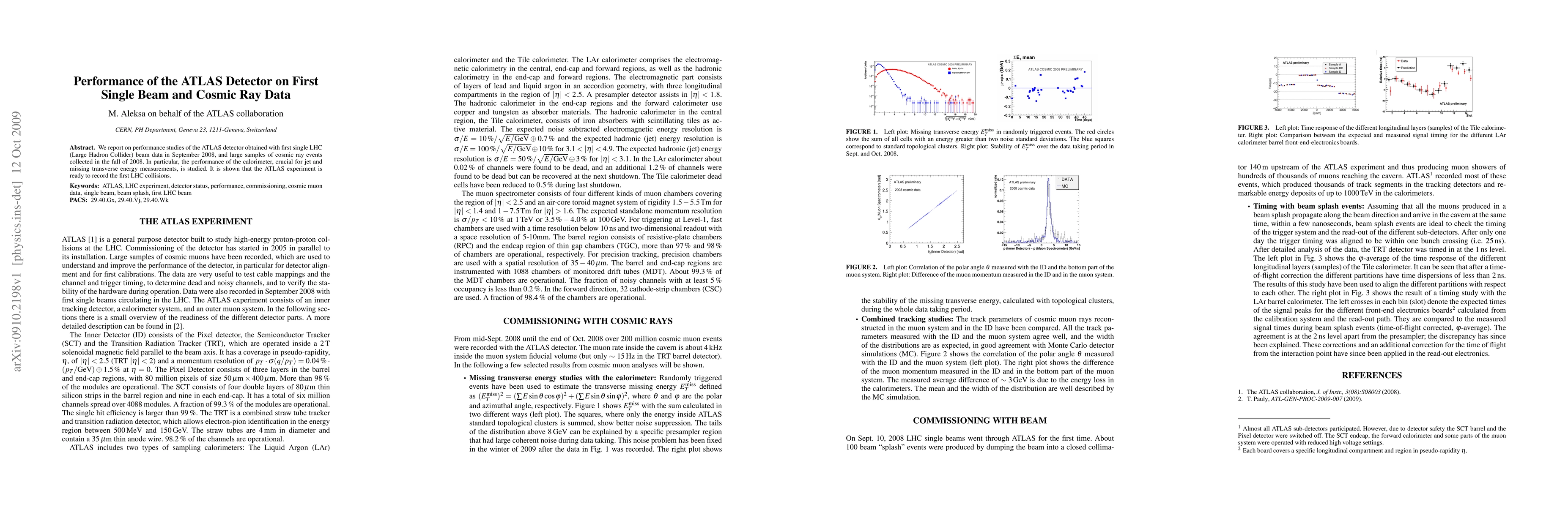 We report on performance studies of the ATLAS detector obtained with first single LHC (Large Hadron Collider) beam data in September 2008, and large samples of cosmic ray events collected in the fall of 2008. In particular, the performance of the calorimeter, crucial for jet and missing transverse energy measurements, is studied. It is shown that the ATLAS experiment is ready to record the first LHC collisions.