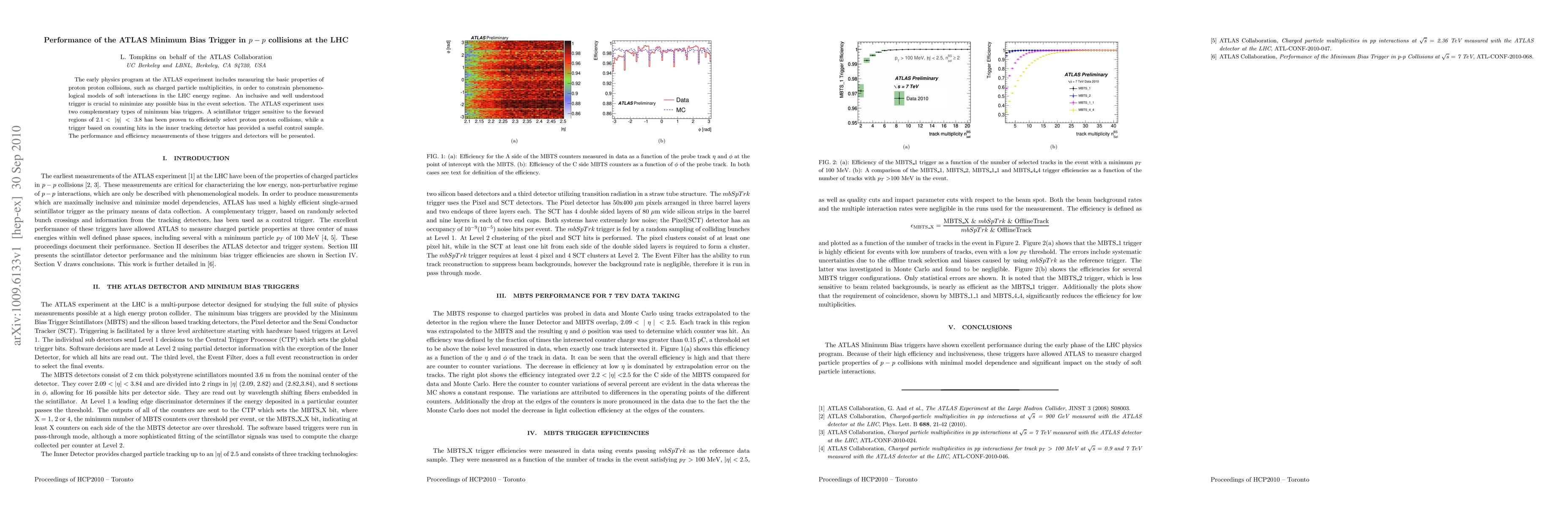 The ATLAS experiment employs two minimum bias triggers for proton-proton collisions at the LHC, aiming to accurately measure charged particle multiplicities and constrain soft interaction models. The performance and efficiency of these triggers, including a scintillator trigger and a hit-counting trigger, are evaluated to ensure unbiased event selection.