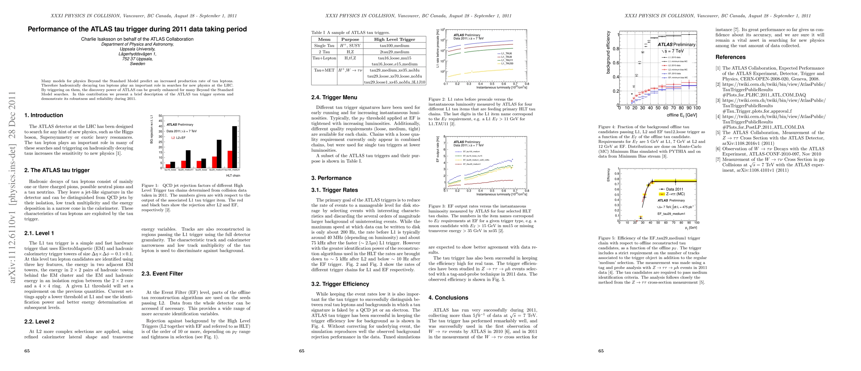 This paper describes the ATLAS tau trigger system, which is crucial for detecting hadronically decaying tau leptons to enhance the discovery power of the ATLAS experiment at the LHC. It demonstrates the robustness and reliability of the trigger during the 2011 data taking period.