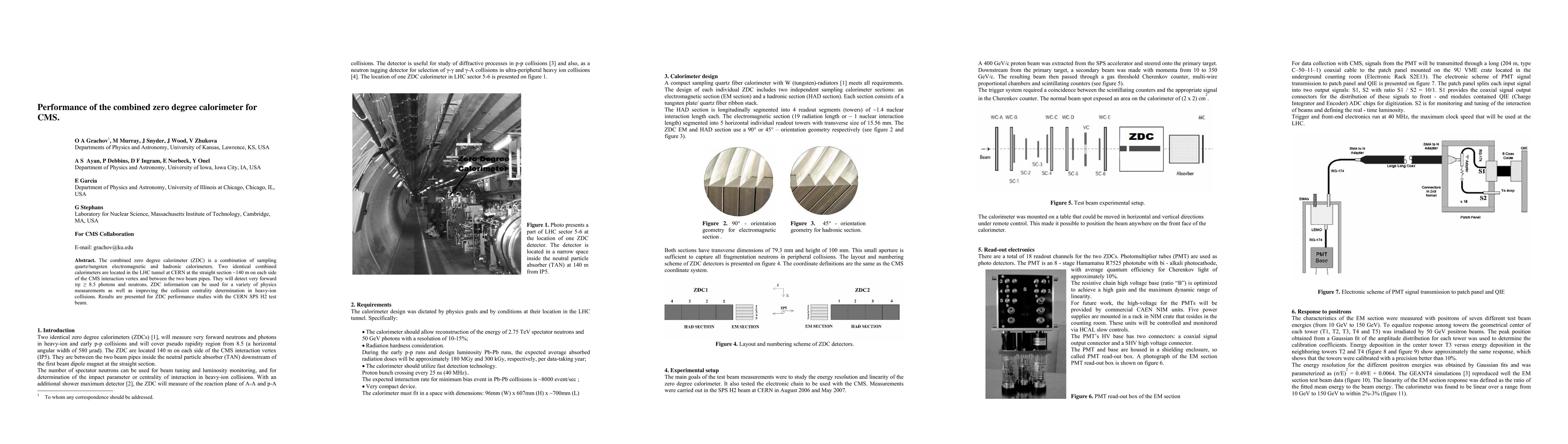 The combined zero degree calorimeter (ZDC) is a combination of sampling quartz/tungsten electromagnetic and hadronic calorimeters. Two identical combined calorimeters are located in the LHC tunnel at CERN at the straight section ~140 m on each side of the CMS interaction vertex and between the two beam pipes. They will detect very forward photons and neutrons. ZDC information can be used for a variety of physics measurements as well as improving the collision centrality determination in heavy-ion collisions. Results are presented for ZDC performance studies with the CERN SPS H2 test beam.