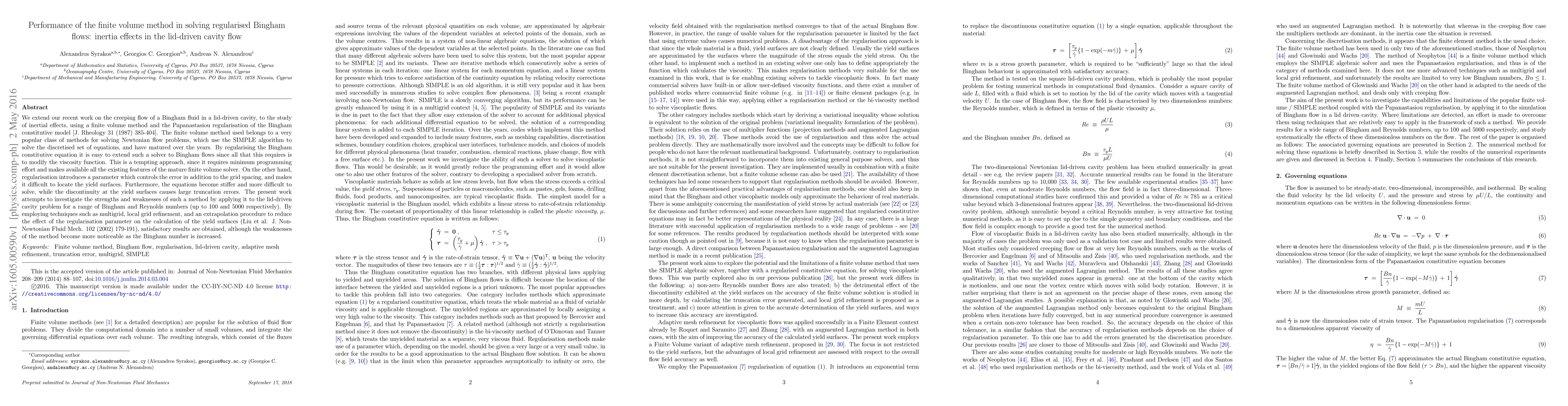 This paper investigates the performance of the finite volume method for solving regularised Bingham flows, focusing on inertia effects in lid-driven cavity flow. The study employs the Papanastasiou regularisation and extends existing solvers with minimal programming effort, though it highlights the method's stiffness and difficulty in locating yield surfaces, especially at higher Bingham numbers.