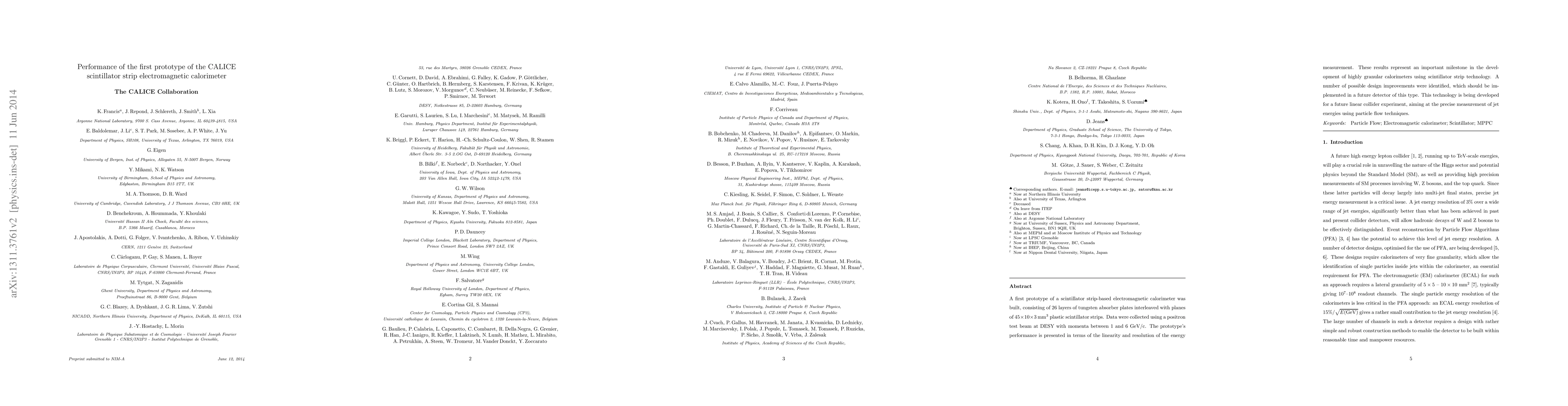 The CALICE scintillator strip prototype electromagnetic calorimeter, consisting of tungsten and plastic scintillator strips, demonstrated linearity and resolution in energy measurements using a positron test beam at DESY. These results mark a significant step in developing highly granular calorimeters for future linear collider experiments.