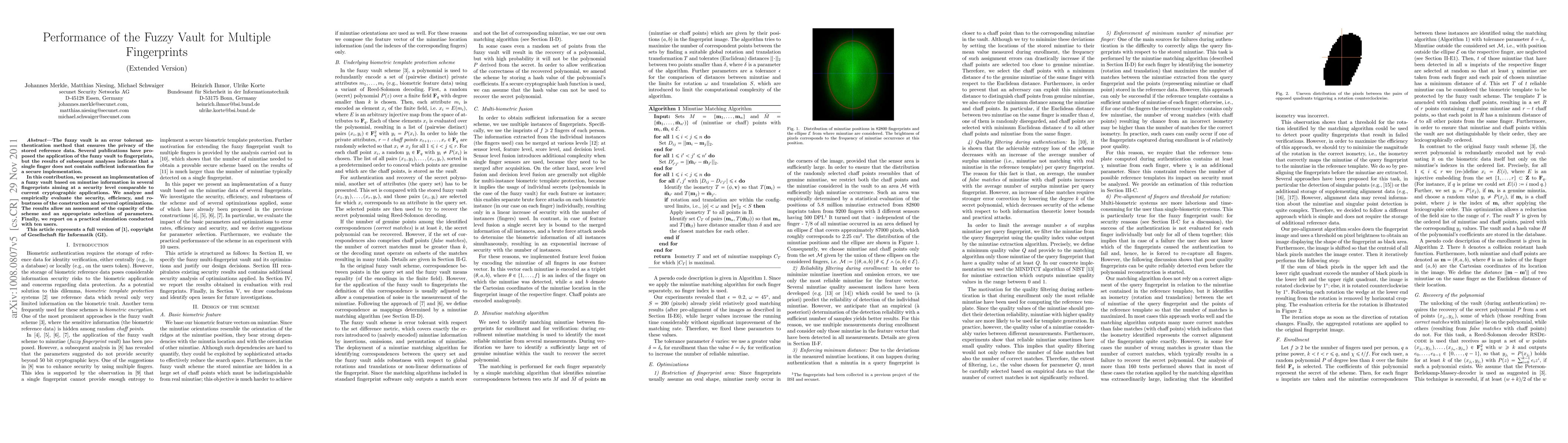 The fuzzy vault is an error tolerant authentication method that ensures the privacy of the stored reference data. Several publications have proposed the application of the fuzzy vault to fingerprints, but the results of subsequent analyses indicate that a single finger does not contain sufficient information for a secure implementation. In this contribution, we present an implementation of a fuzzy vault based on minutiae information in several fingerprints aiming at a security level comparable to current cryptographic applications. We analyze and empirically evaluate the security, efficiency, and robustness of the construction and several optimizations. The results allow an assessment of the capacity of the scheme and an appropriate selection of parameters. Finally, we report on a practical simulation conducted with ten users.