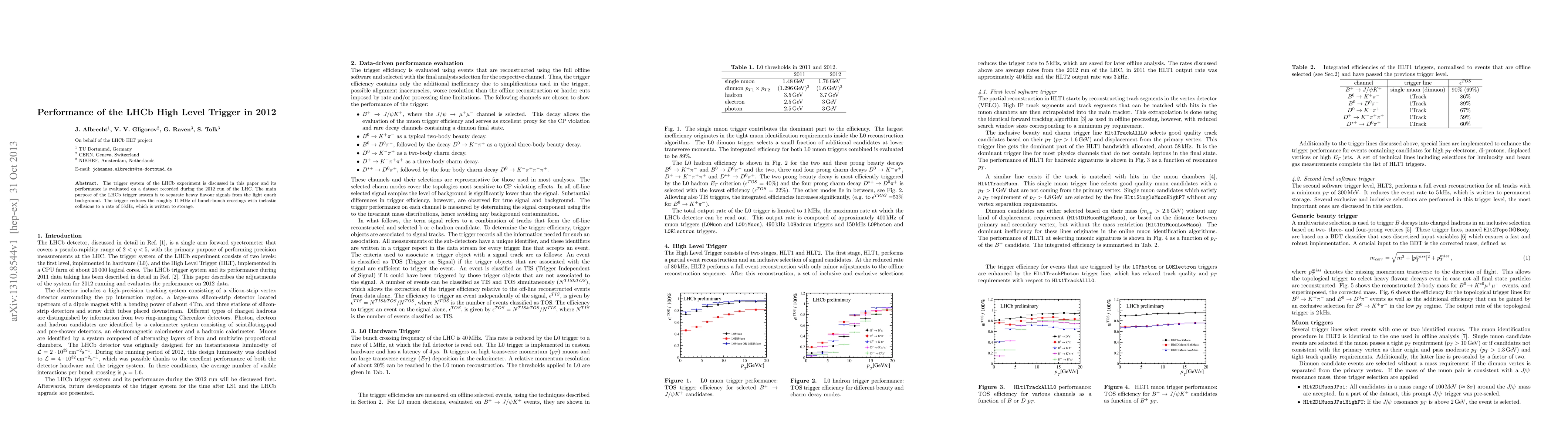 This paper evaluates the performance of the LHCb High Level Trigger during the 2012 run, focusing on its ability to efficiently filter heavy flavour signals from light quark backgrounds, reducing event rates from 11MHz to 5kHz for storage.