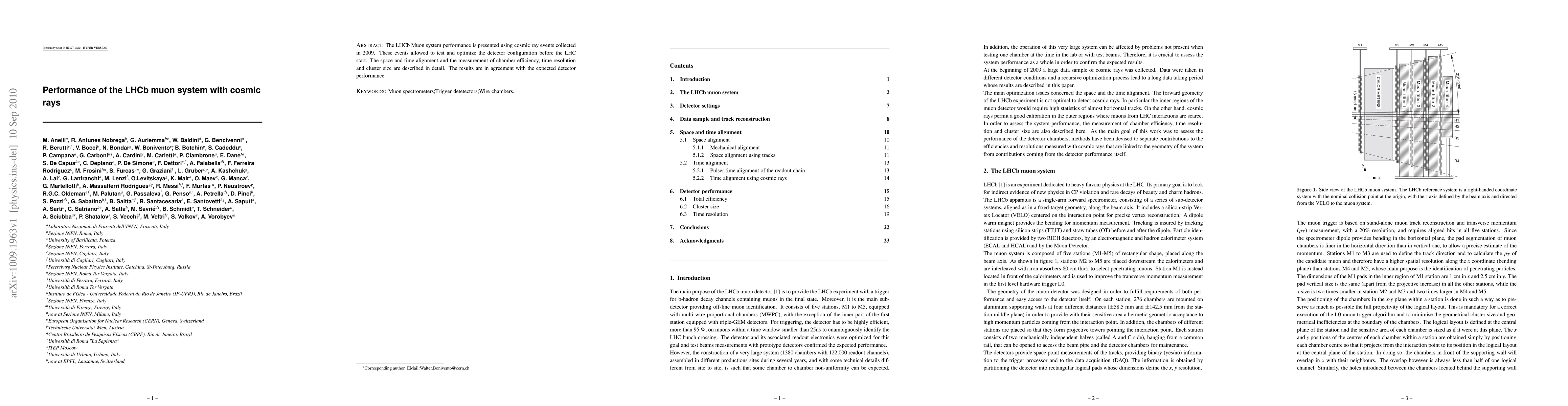 Researchers tested the LHCb muon system's performance using cosmic rays, confirming detector efficiency and time resolution in agreement with expectations.