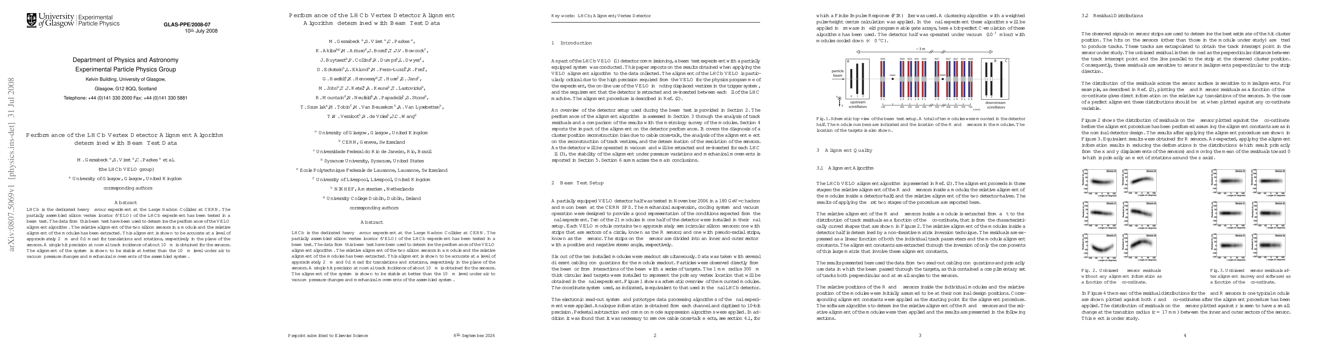 The LHCb experiment's silicon vertex locator (VELO) alignment algorithm was evaluated using beam test data, achieving an accuracy of approximately 2 microns for translations and 0.1 mrad for rotations, with a single hit precision of about 10 microns. The system's alignment remains stable under pressure and mechanical changes.