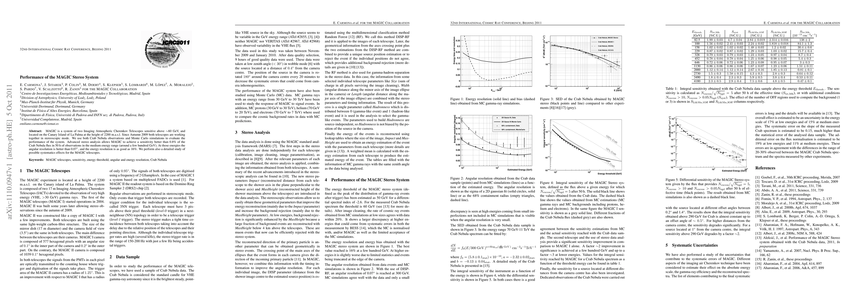 The MAGIC stereo system, consisting of two Imaging Atmospheric Cherenkov Telescopes on La Palma, achieves a sensitivity of less than 0.8% of the Crab Nebula flux in 50 hours, with an angular resolution of better than 0.07° and energy resolution of 16% in the few hundred GeV range. Systematic effects are also thoroughly studied.