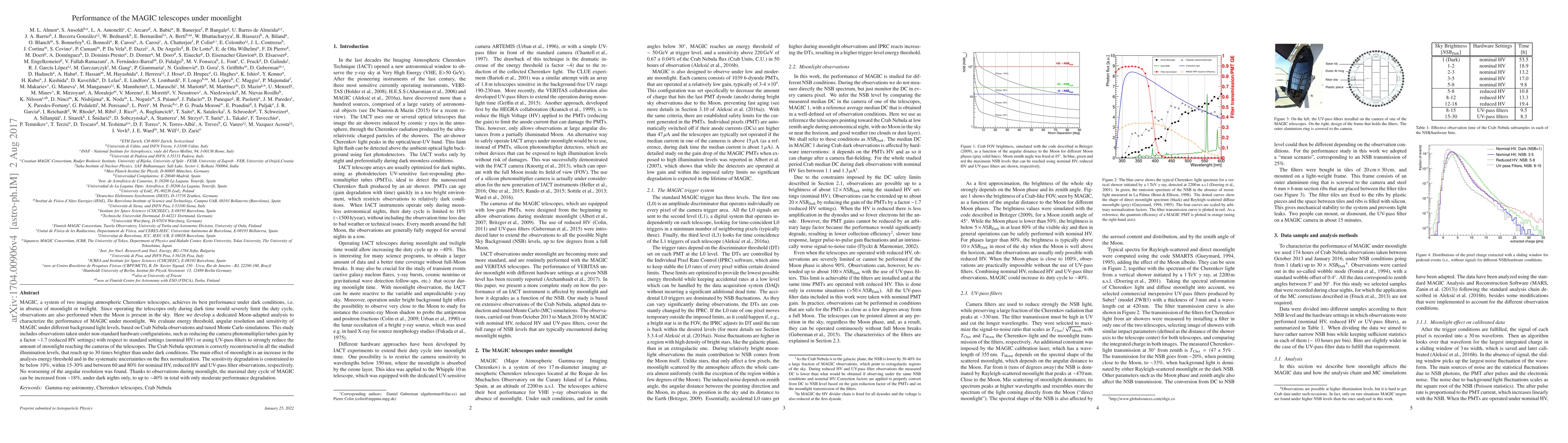 The MAGIC telescopes maintain acceptable performance under moonlight, with sensitivity degradation constrained to below 10% under nominal settings, and up to 80% under UV-pass filter settings. Despite increased energy thresholds and systematic uncertainties, the duty cycle can be increased from ~18% to ~40% by observing during moonlight.