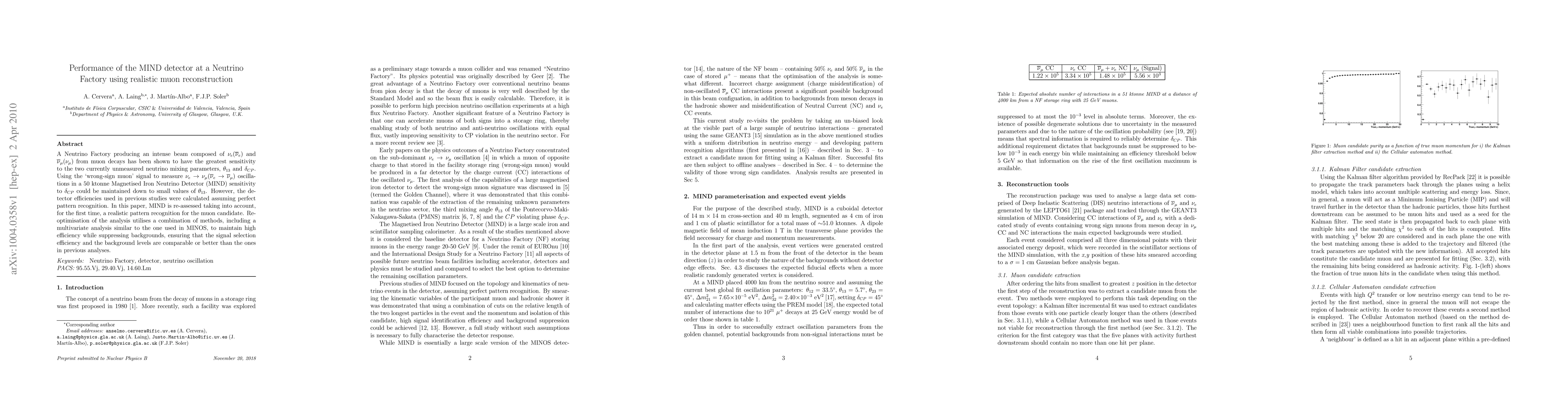 This paper evaluates the performance of the MIND detector at a Neutrino Factory, considering realistic muon reconstruction. It finds that with optimized methods, including multivariate analysis, the detector can maintain sensitivity to delta_CP even with small theta_13 values, while improving signal selection efficiency and background suppression compared to previous analyses.