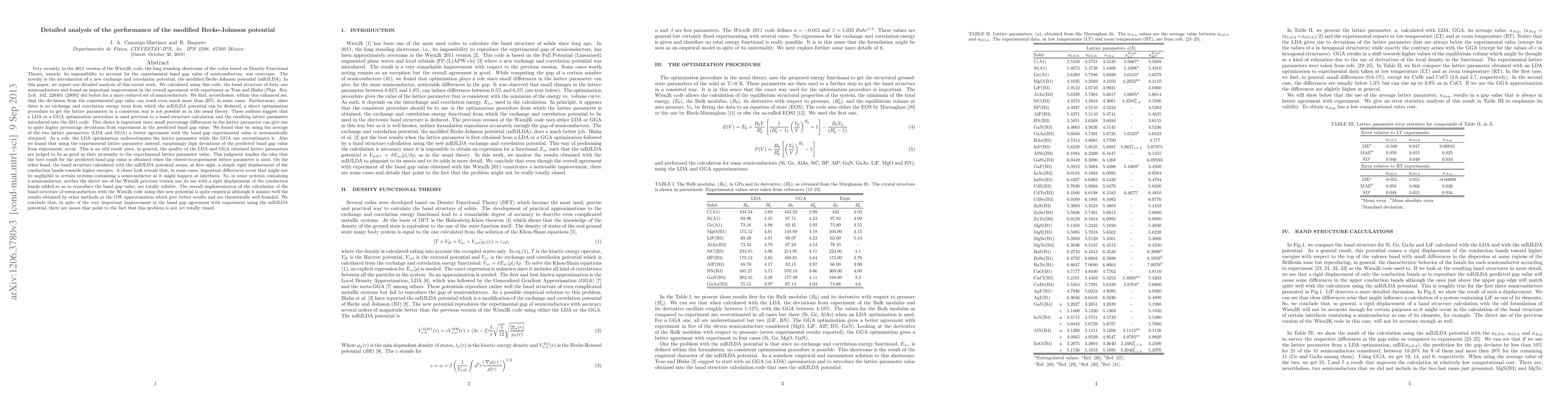 This paper analyzes the modified Becke-Johnson potential (mBJLDA) introduced in the 2011 Wien2K code, which aims to better match the experimental band gap values of semiconductors. The study reports improved agreement with experimental data for 41 semiconductors compared to previous methods, though deviations of over 20% remain in some cases.