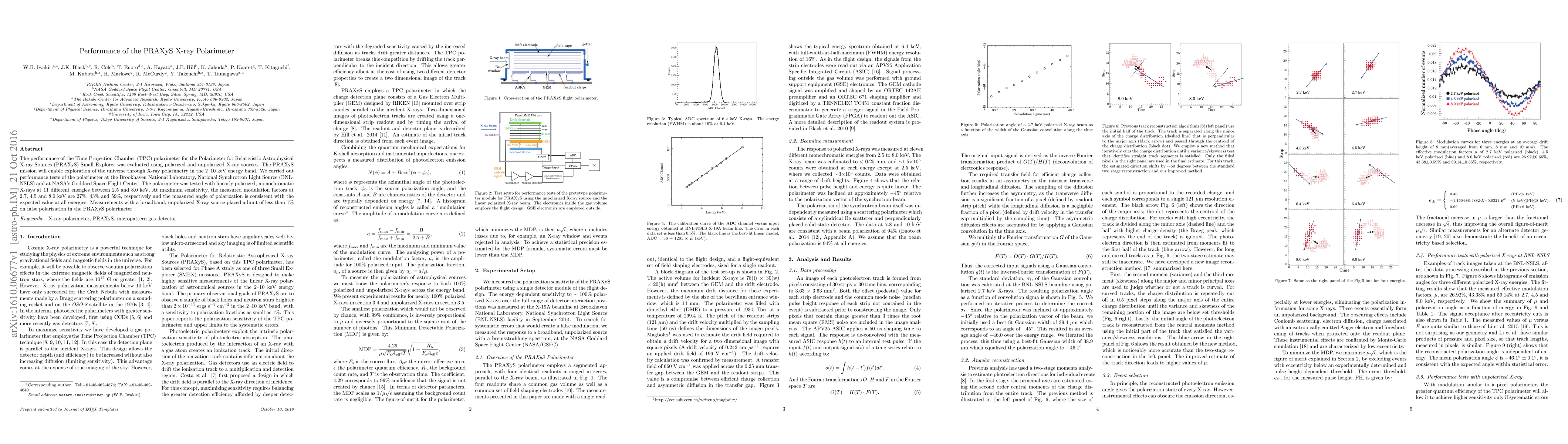 The performance of the Time Projection Chamber (TPC) polarimeter for the Polarimeter for Relativistic Astrophysical X-ray Sources (PRAXyS) Small Explorer was evaluated using polarized and unpolarized X-ray sources. The PRAXyS mission will enable exploration of the universe through X-ray polarimetry in the 2-10 keV energy band. We carried out performance tests of the polarimeter at the Brookhaven National Laboratory, National Synchrotron Light Source (BNL-NSLS) and at NASA's Goddard Space Flight Center. The polarimeter was tested with linearly polarized, monochromatic X-rays at 11 different energies between 2.5 and 8.0 keV. At maximum sensitivity, the measured modulation factors at 2.7, 4.5 and 8.0 keV are 27%, 43% and 59%, respectively and the measured angle of polarization is consistent with the expected value at all energies. Measurements with a broadband, unpolarized X-ray source placed a limit of less than 1% on false polarization in the PRAXyS polarimeter.