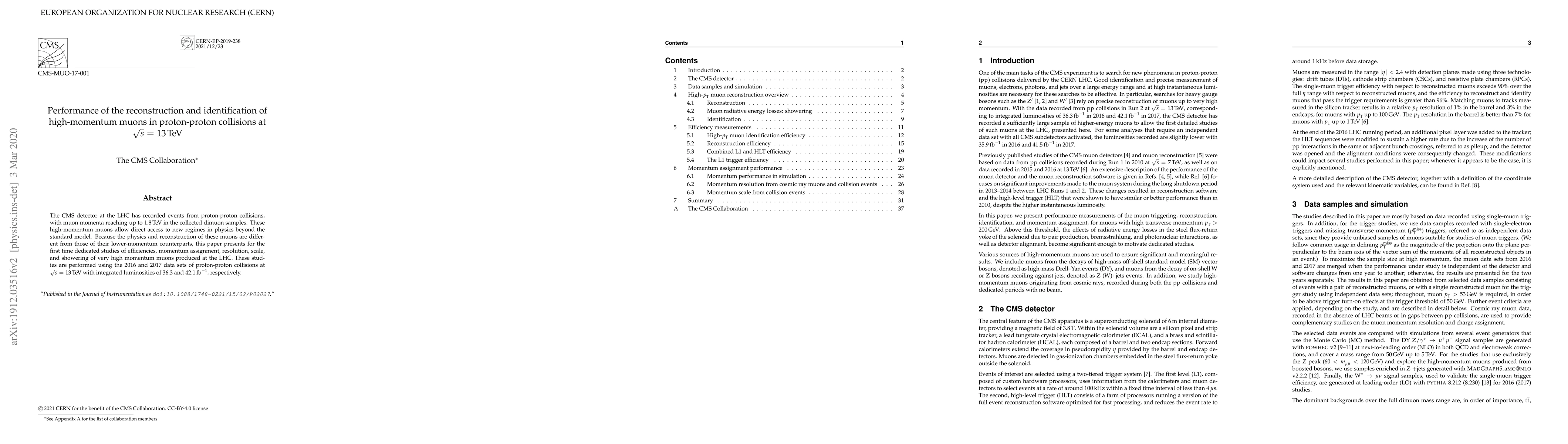 This paper investigates the performance of the CMS detector in reconstructing and identifying high-momentum muons in proton-proton collisions at 13 TeV, focusing on efficiencies, momentum assignment, resolution, scale, and showering. The study uses data from 2016 and 2017 with significant integrated luminosities to explore physics beyond the standard model.