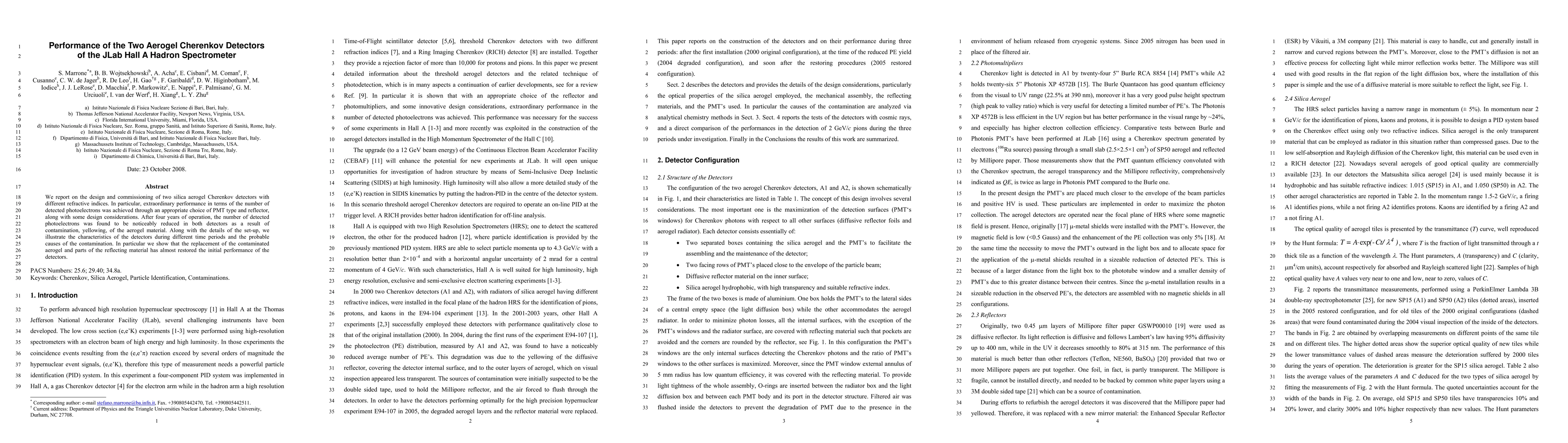 We report on the design and commissioning of two silica aerogel Cherenkov detectors with different refractive indices. In particular, extraordinary performance in terms of the number of detected photoelectrons was achieved through an appropriate choice of PMT type and reflector, along with some design considerations. After four years of operation, the number of detected photoelectrons was found to be noticeably reduced in both detectors as a result of contamination, yellowing, of the aerogel material. Along with the details of the set-up, we illustrate the characteristics of the detectors during different time periods and the probable causes of the contamination. In particular we show that the replacement of the contaminated aerogel and parts of the reflecting material has almost restored the initial performance of the detectors.