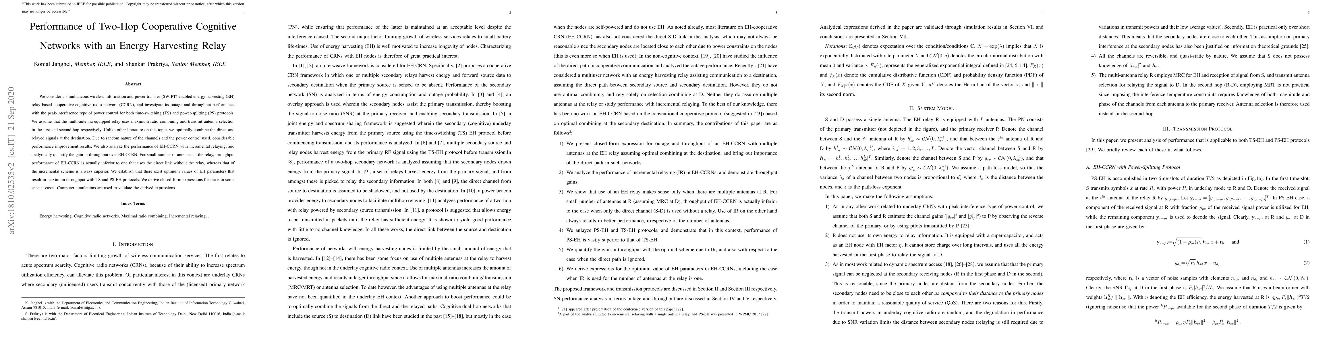 This research paper investigates the performance of two-hop cooperative cognitive networks with energy harvesting relays, finding that optimal EH parameters can significantly improve throughput in certain scenarios, while others may see inferior performance compared to direct links.
