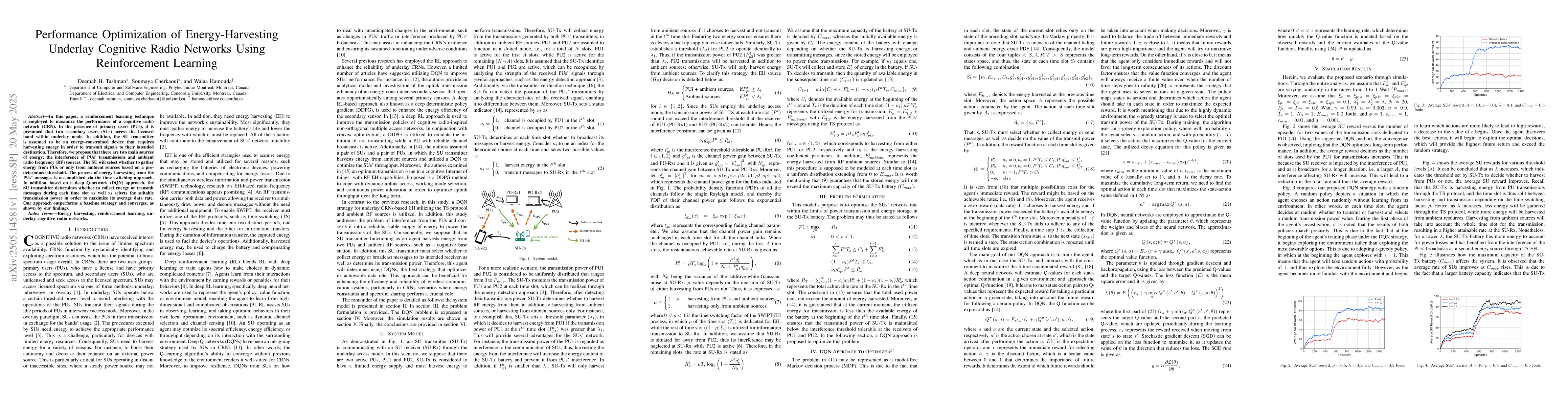 A reinforcement learning technique is used to optimize energy harvesting in underlay cognitive radio networks, improving performance and data rate for secondary users.