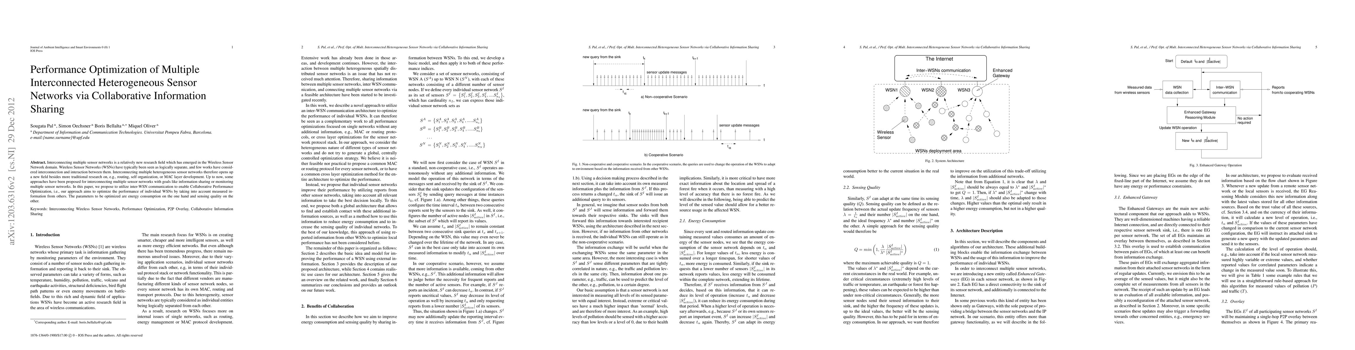 This paper proposes a method for interconnecting multiple heterogeneous sensor networks to enhance collaborative performance optimization through shared information, focusing on reducing energy consumption and improving sensing quality. The approach aims to optimize individual networks by leveraging data from interconnected networks.