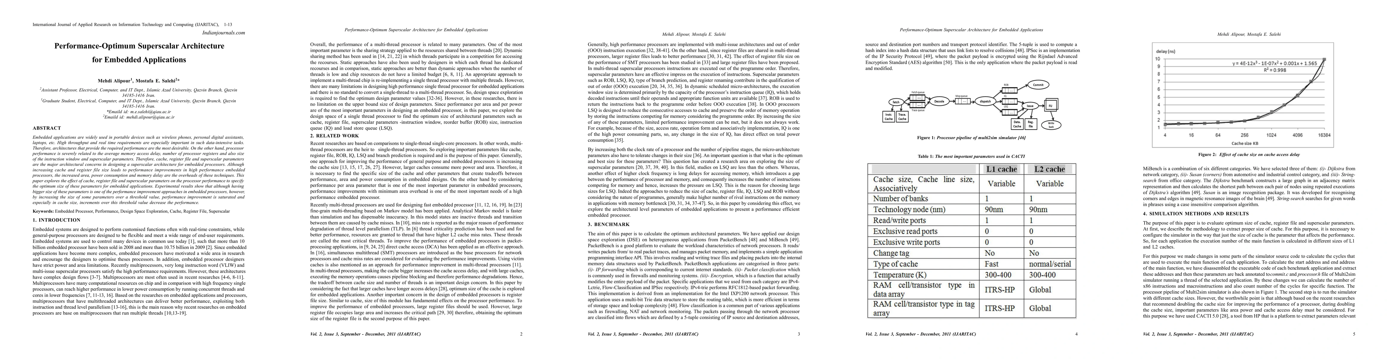 This paper investigates the optimal configuration of cache, register file, and superscalar parameters for embedded processors to achieve high performance while managing area, power consumption, and memory delay. The study finds that while larger sizes can improve performance, beyond a certain threshold, further increases lead to diminishing returns or even performance degradation.