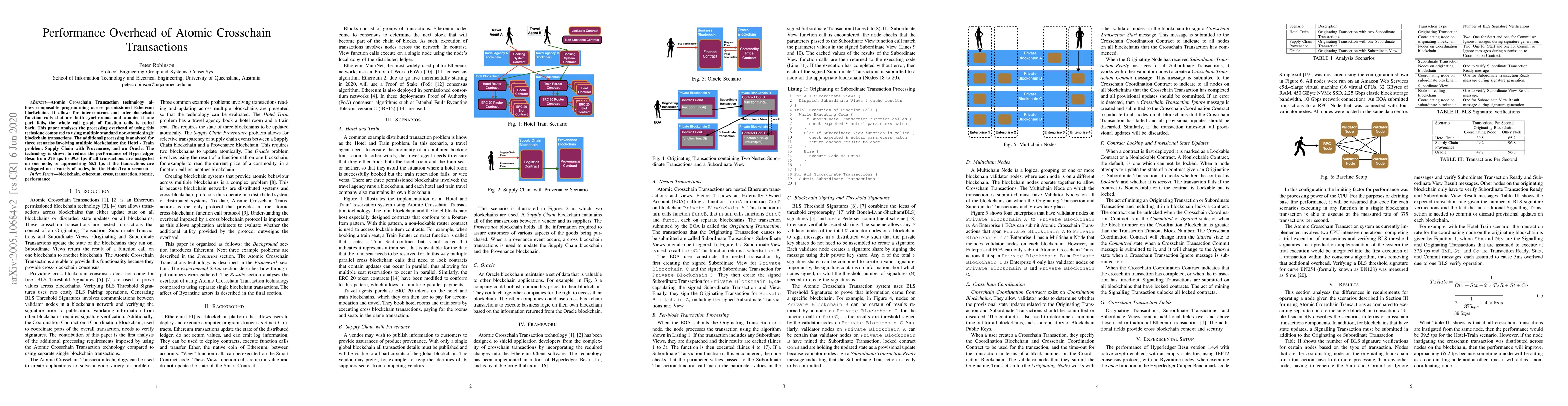 This paper examines the performance overhead of Atomic Crosschain Transactions compared to standard non-atomic blockchain transactions, finding significant reductions in throughput for Hyperledger Besu, from 375 to 39.5 tps when transactions are initiated on one node, and up to 65.2 tps when initiated across multiple nodes.