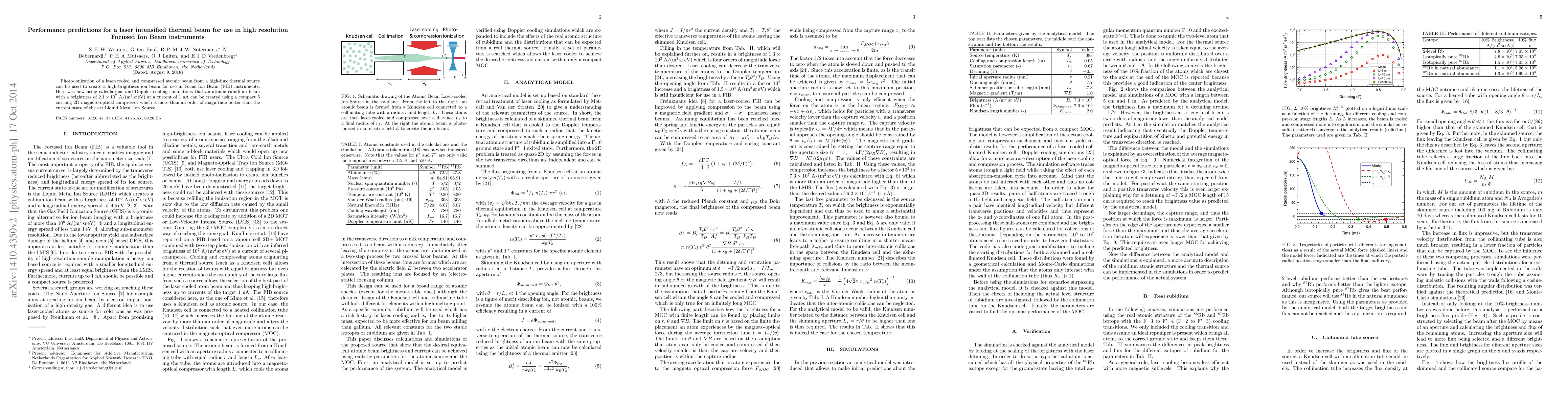 Photo-ionization of a laser-cooled and compressed atomic beam from a high-flux thermal source can be used to create a high-brightness ion beam for use in Focus Ion Beam (FIB) instruments. Here we show using calculations and Doppler cooling simulations that an atomic rubidium beam with a brightness of $2.1 \times 10^7 A/(m^2\,sr\,eV)$ at a current of 1 nA can be created using a compact 5 cm long 2D magneto-optical compressor which is more than an order of magnitude better than the current state of the art Liquid Metal Ion Source.