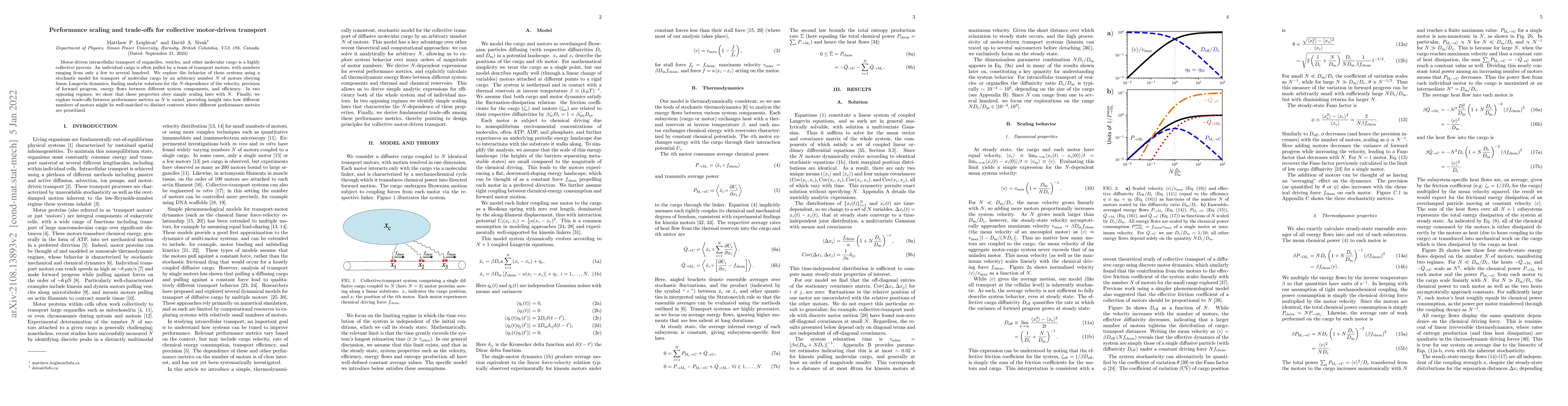 Motor-driven intracellular transport of organelles, vesicles, and other molecular cargo is a highly collective process. An individual cargo is often pulled by a team of transport motors, with numbers ranging from only a few to several hundred. We explore the behavior of these systems using a stochastic model for transport of molecular cargo by an arbitrary number N of motors obeying linear Langevin dynamics, finding analytic solutions for the N-dependence of the velocity, precision of forward progress, energy flows between different system components, and efficiency. In two opposing regimes, we show that these properties obey simple scaling laws with N. Finally, we explore trade-offs between performance metrics as N is varied, providing insight into how different numbers of motors might be well-matched to distinct contexts where different performance metrics are prioritized.