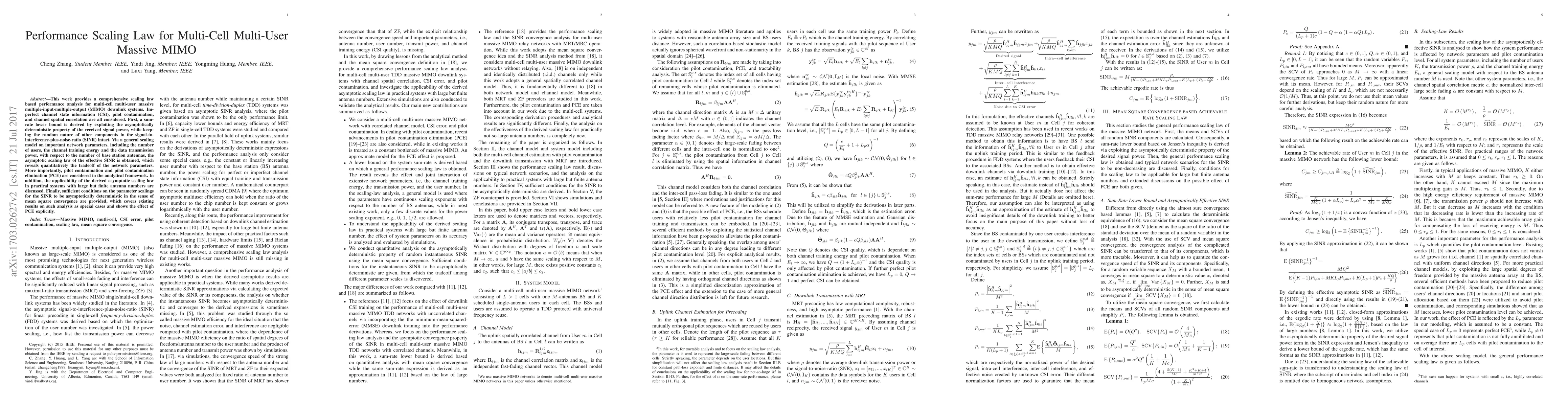This paper derives a comprehensive scaling law for multi-cell multi-user massive MIMO systems, considering factors like imperfect channel state information and pilot contamination. The study provides an asymptotic scaling law for the effective SINR, revealing the tradeoff between network parameters and discussing the practical implications for large but finite antenna numbers.