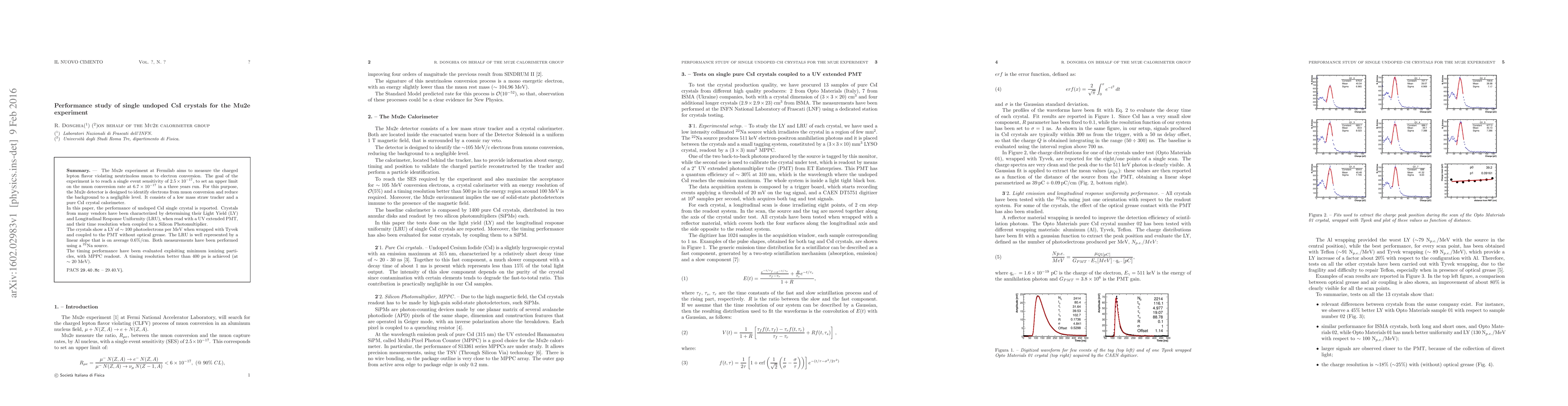 This paper reports on the performance of single undoped CsI crystals used in the Mu2e experiment, focusing on their light yield, uniformity, and time resolution. The crystals exhibit a light yield of ~100 photoelectrons per MeV and a timing resolution better than 400 ps at ~20 MeV, essential for detecting electron signals from muon conversion.