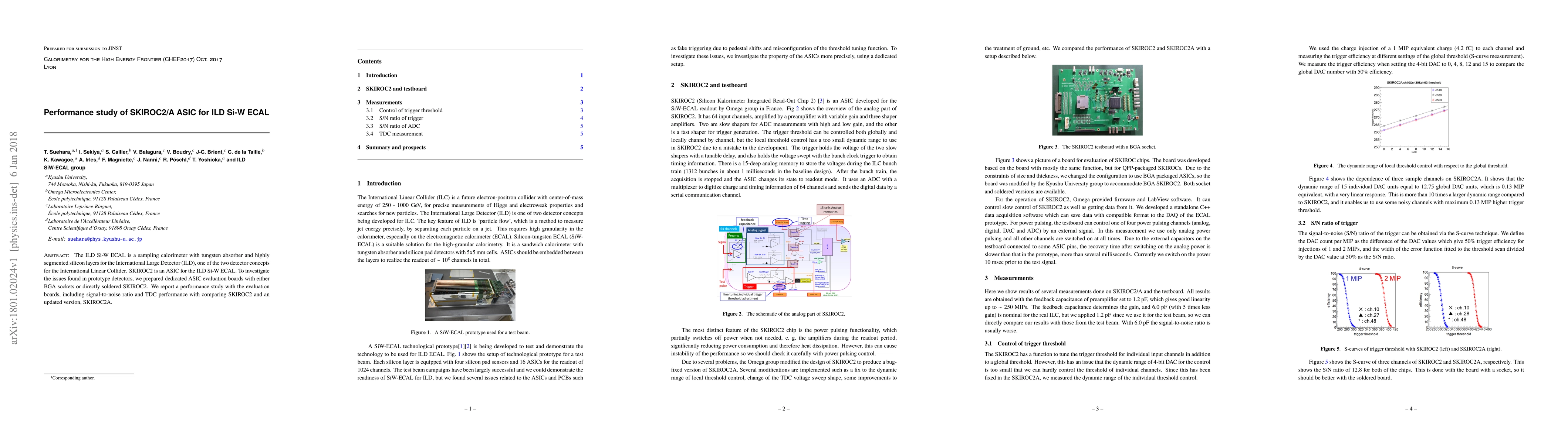 The ILD Si-W ECAL is a sampling calorimeter with tungsten absorber and highly segmented silicon layers for the International Large Detector (ILD), one of the two detector concepts for the International Linear Collider. SKIROC2 is an ASIC for the ILD Si-WECAL. To investigate the issues found in prototype detectors, we prepared dedicated ASIC evaluation boards with either BGA sockets or directly soldered SKIROC2. We report a performance study with the evaluation boards, including signal-to-noise ratio and TDC performance with comparing SKIROC2 and an updated version, SKIROC2A.