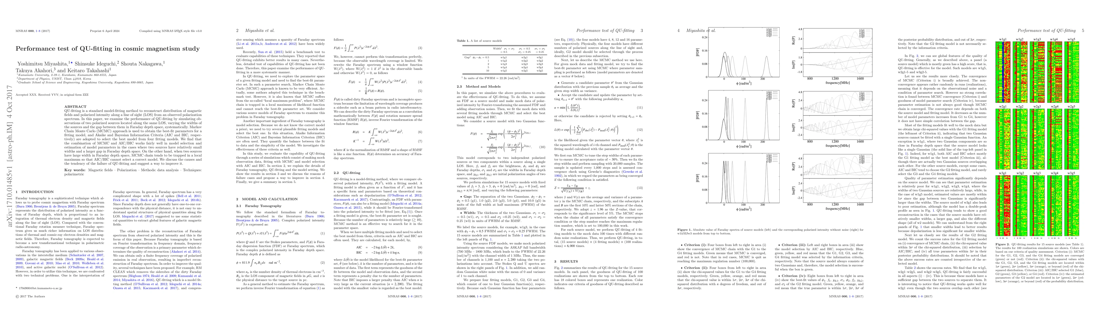 QU-fitting is a standard model-fitting method to reconstruct distribution of magnetic fields and polarized intensity along a line of sight (LOS) from an observed polarization spectrum. In this paper, we examine the performance of QU-fitting by simulating observations of two polarized sources located along the same LOS, varying the widths of the sources and the gap between them in Faraday depth space, systematically. Markov Chain Monte Carlo (MCMC) approach is used to obtain the best-fit parameters for a fitting model, and Akaike and Bayesian Information Criteria (AIC and BIC, respectively) are adopted to select the best model from four fitting models. We find that the combination of MCMC and AIC/BIC works fairly well in model selection and estimation of model parameters in the cases where two sources have relatively small widths and a larger gap in Faraday depth space. On the other hand, when two sources have large width in Faraday depth space, MCMC chain tends to be trapped in a local maximum so that AIC/BIC cannot select a correct model. We discuss the causes and the tendency of the failure of QU-fitting and suggest a way to improve it.