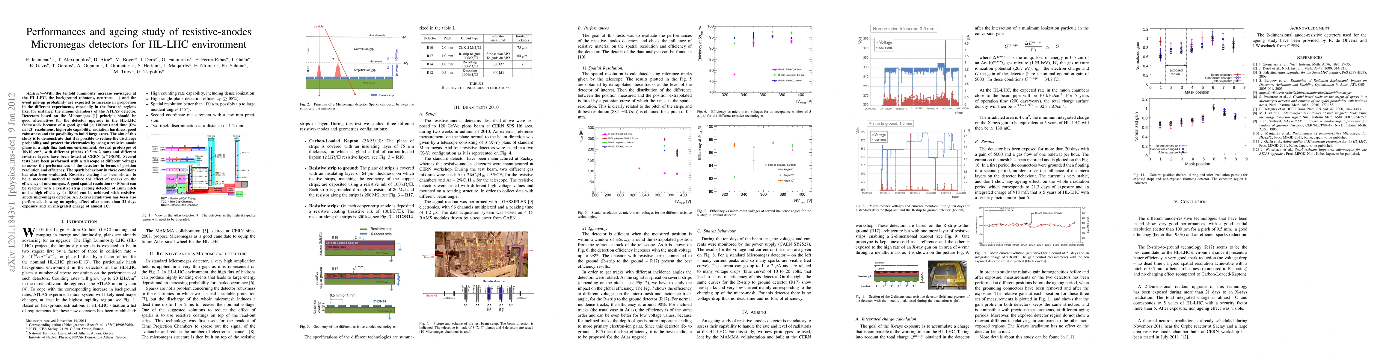 This study investigates the performance and ageing of resistive-anode Micromegas detectors for the HL-LHC environment, demonstrating that resistive coatings can significantly reduce spark effects and maintain high efficiency (>98%) and spatial resolution (~80 μm) even under high flux conditions. Prolonged X-ray irradiation tests showed no ageing effects after 21 days.