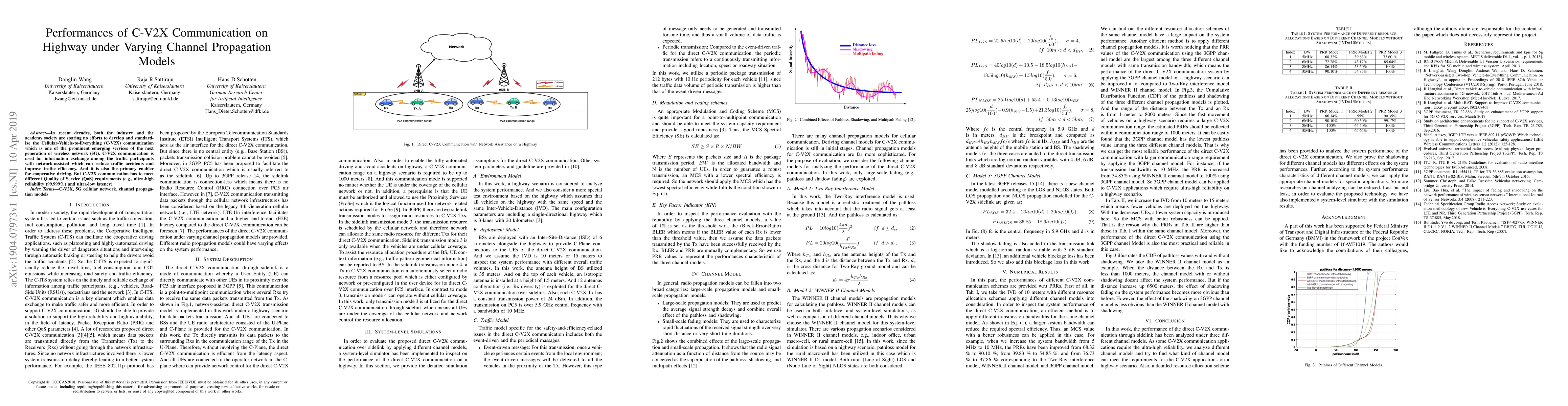 This paper investigates the performance of C-V2X communication on highways using different channel propagation models to ensure ultra-high reliability and low latency for 5G wireless networks. The study aims to improve traffic safety and efficiency through cooperative driving.