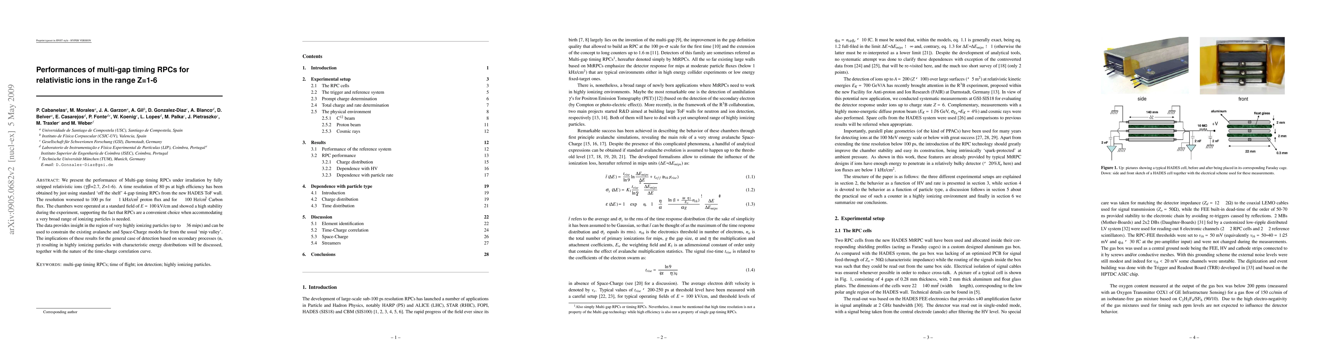 We present the performance of Multi-gap timing RPCs under irradiation by fully stripped relativistic ions (gamma*beta=2.7, Z=1-6). A time resolution of 80 ps at high efficiency has been obtained by just using standard `off the shelf' 4-gap timing RPCs from the new HADES ToF wall. The resolution worsened to 100 ps for ~ 1 kHz/cm2 proton flux and for ~ 100 Hz/cm2 Carbon flux. The chambers were operated at a standard field of E=100 kV/cm and showed a high stability during the experiment, supporting the fact that RPCs are a convenient choice when accommodating a very broad range of ionizing particles is needed. The data provides insight in the region of very highly ionizing particles (up to x 36 mips) and can be used to constrain the existing avalanche and Space-Charge models far from the usual `mip valley'. The implications of these results for the general case of detection based on secondary processes (n, gamma) resulting in highly ionizing particles with characteristic energy distributions will be discussed, together with the nature of the time-charge correlation curve.