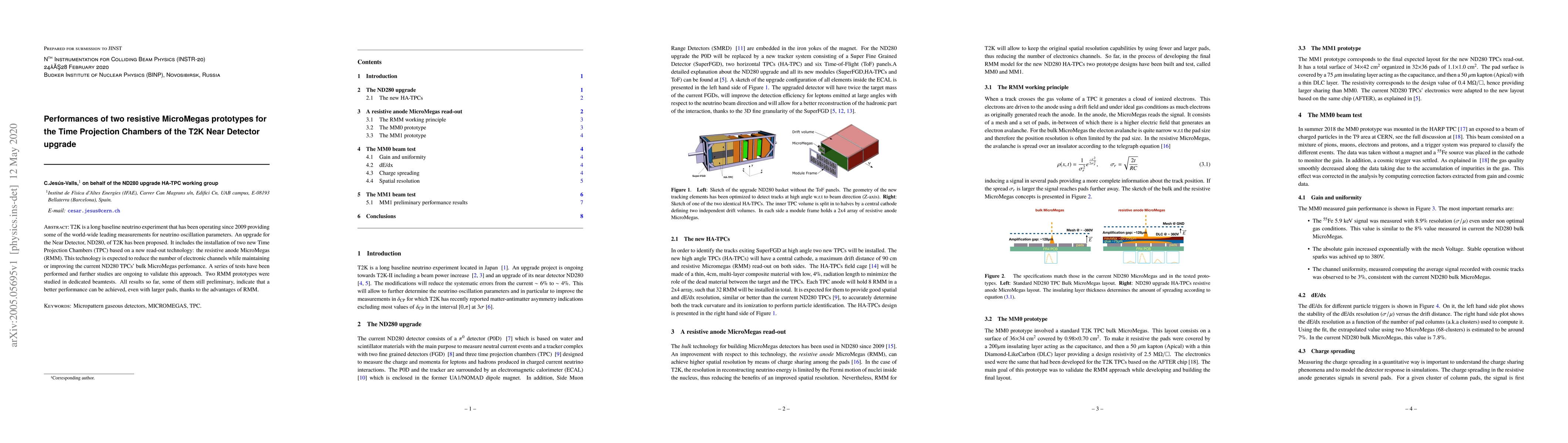 This paper evaluates two resistive MicroMegas prototypes for the T2K Near Detector upgrade, focusing on their performance in new Time Projection Chambers. Preliminary results suggest that RMM technology can enhance performance while reducing electronic channels.