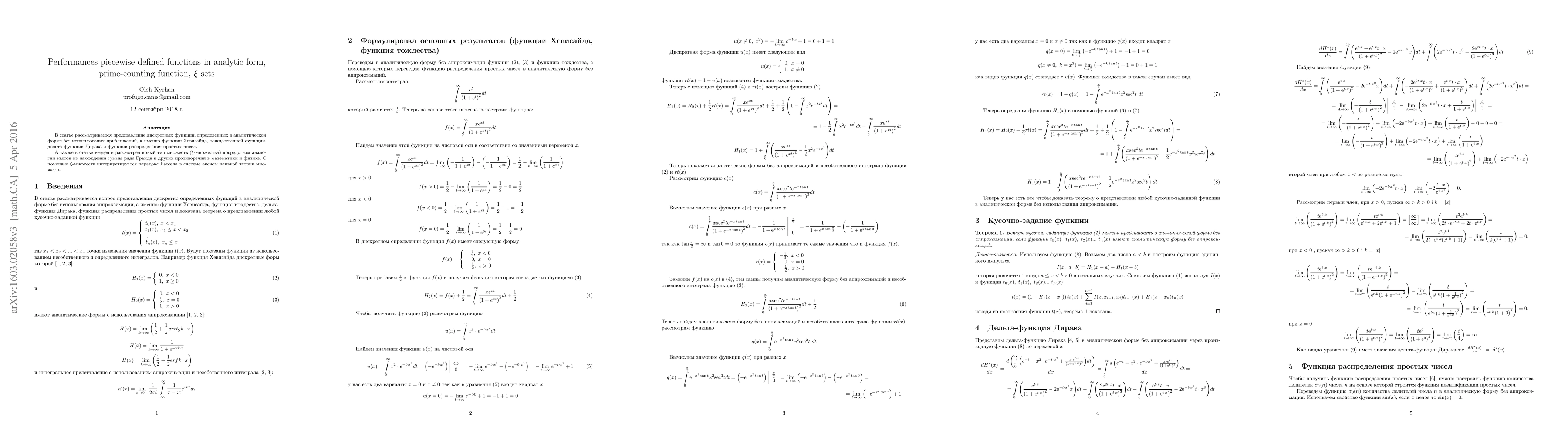 The paper explores the analytic representation of discrete functions like the Heaviside, identity, Dirac delta, and prime-counting functions without approximations. It introduces $\xi$ sets to interpret Russell's paradox within the framework of naive set theory.
