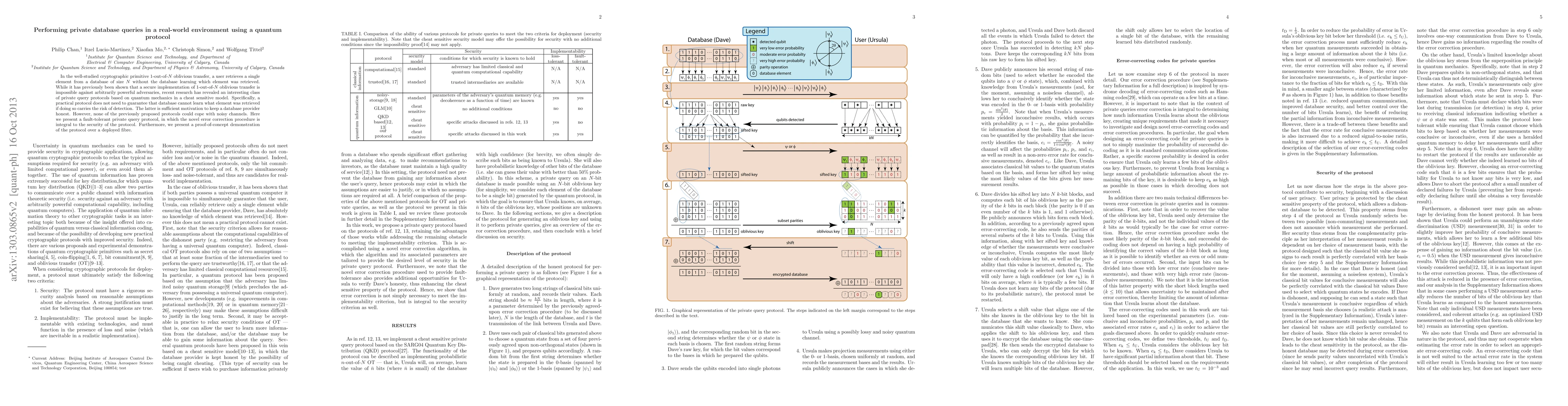 In the well-studied cryptographic primitive 1-out-of-N oblivious transfer, a user retrieves a single element from a database of size N without the database learning which element was retrieved. While it has previously been shown that a secure implementation of 1-out-of-N oblivious transfer is impossible against arbitrarily powerful adversaries, recent research has revealed an interesting class of private query protocols based on quantum mechanics in a cheat sensitive model. Specifically, a practical protocol does not need to guarantee that database cannot learn what element was retrieved if doing so carries the risk of detection. The latter is sufficient motivation to keep a database provider honest. However, none of the previously proposed protocols could cope with noisy channels. Here we present a fault-tolerant private query protocol, in which the novel error correction procedure is integral to the security of the protocol. Furthermore, we present a proof-of-concept demonstration of the protocol over a deployed fibre.