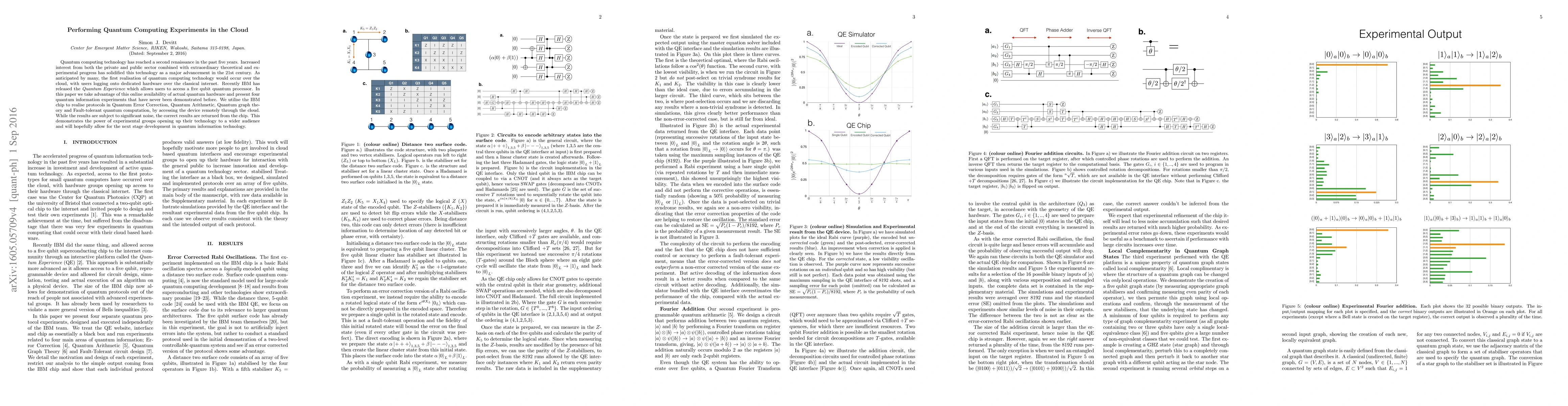 This paper explores the use of IBM's cloud-based quantum computing service to conduct four quantum information experiments: Quantum Error Correction, Quantum Arithmetic, Quantum graph theory, and Fault-tolerant quantum computation. Despite significant noise, the experiments successfully demonstrate the potential of remote quantum computing.