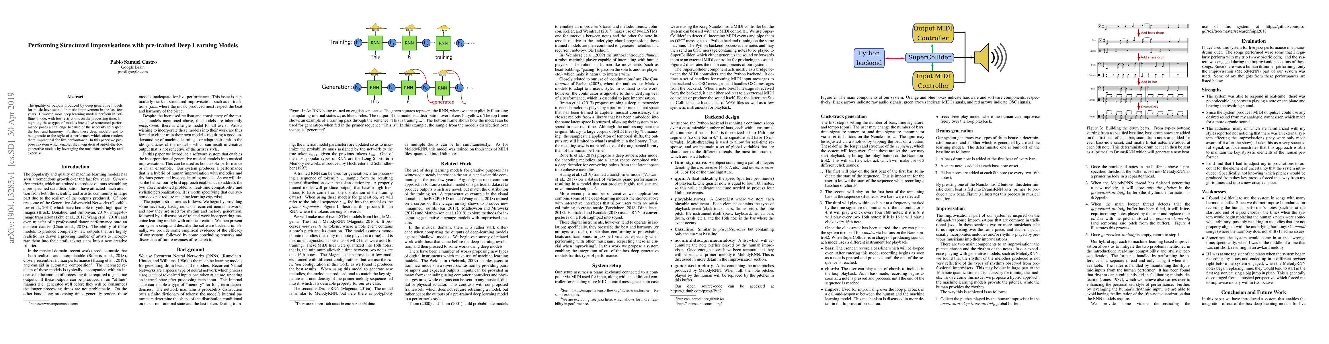The quality of outputs produced by deep generative models for music have seen a dramatic improvement in the last few years. However, most deep learning models perform in "offline" mode, with few restrictions on the processing time. Integrating these types of models into a live structured performance poses a challenge because of the necessity to respect the beat and harmony. Further, these deep models tend to be agnostic to the style of a performer, which often renders them impractical for live performance. In this paper we propose a system which enables the integration of out-of-the-box generative models by leveraging the musician's creativity and expertise.